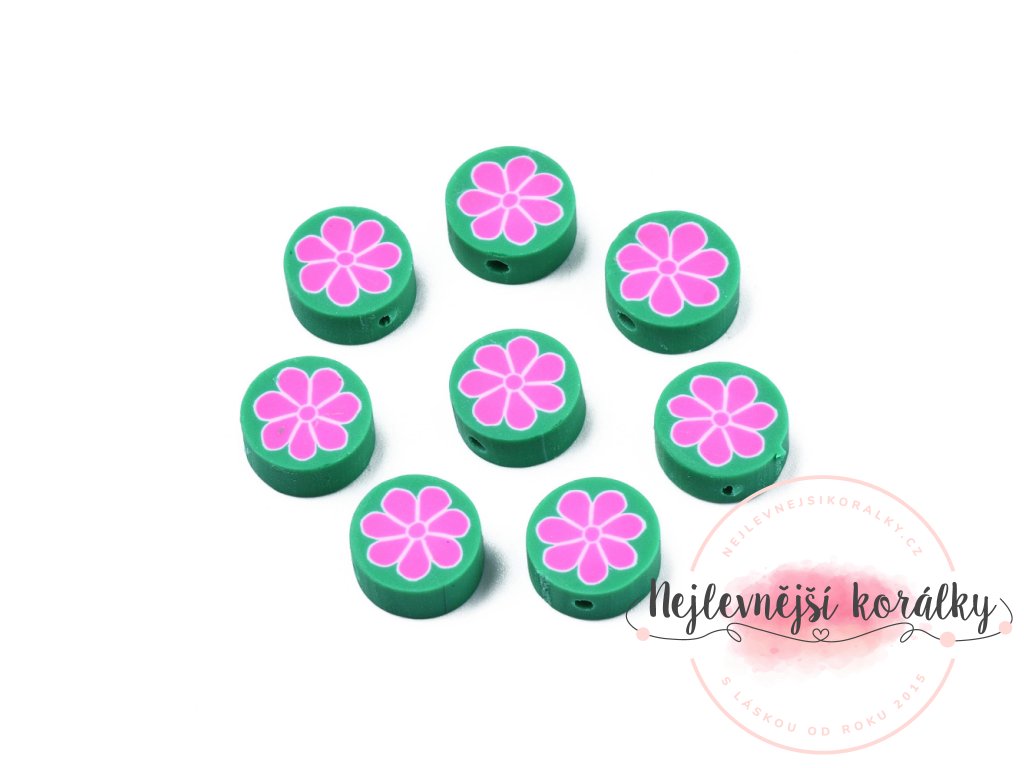 Korálky z polymeru - kulaté s květinou - 10 ks
