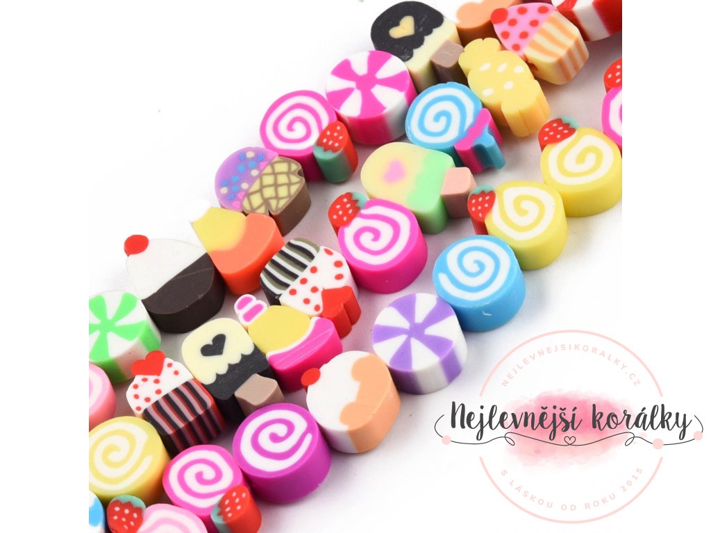 Barevné korálky z polymerové hmoty – Imitace sladkostí, různé tvary