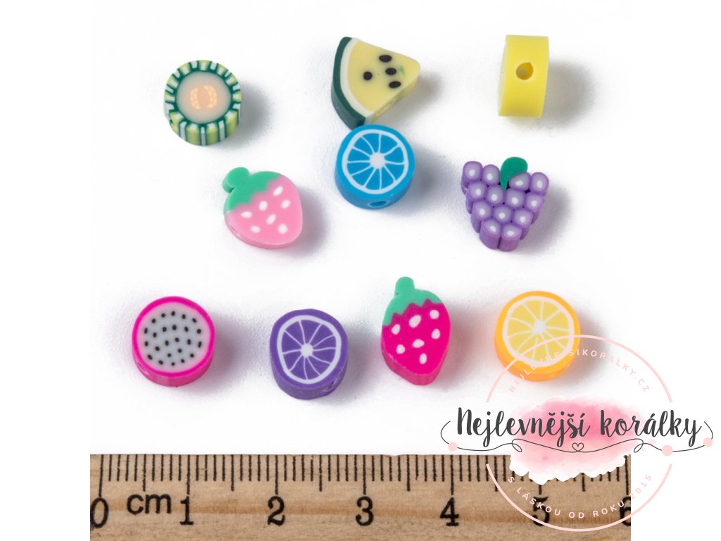 Korálky z polymeru - ovocný mix - 10 ks