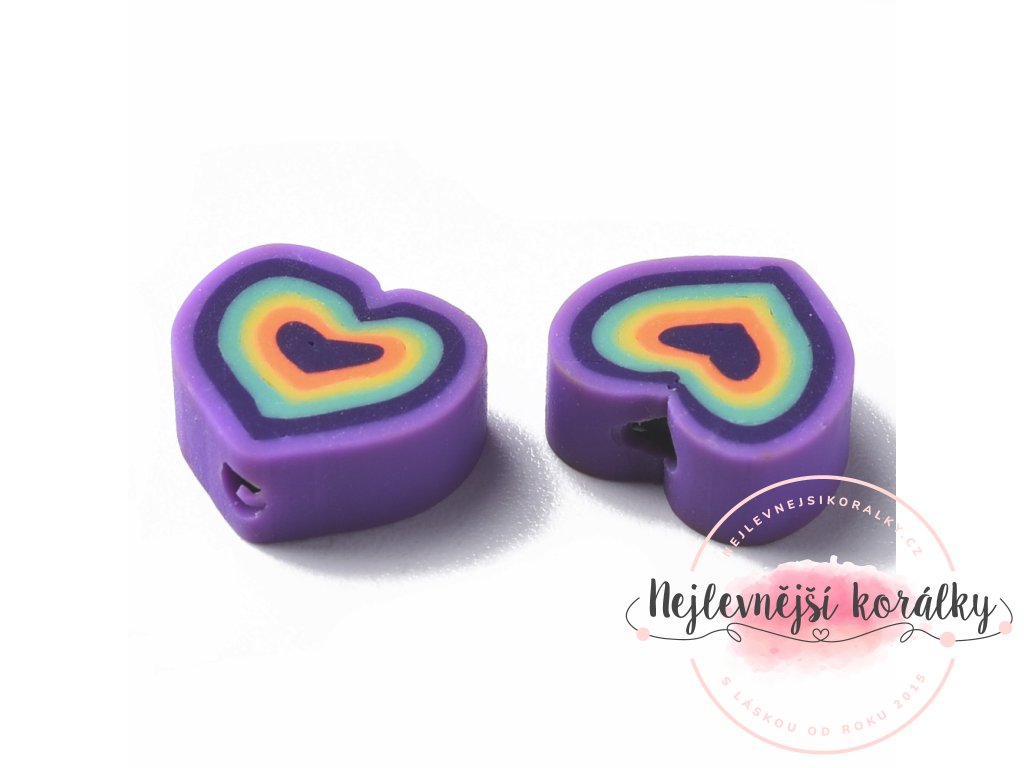 Korálky z polymerové hmoty ve tvaru srdíček v elegantní středně fialové barvě.