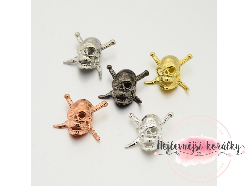 Mosazný korálek - pirátská lebka - různá provedení - 17 x 17 x 10 mm - 1 ks