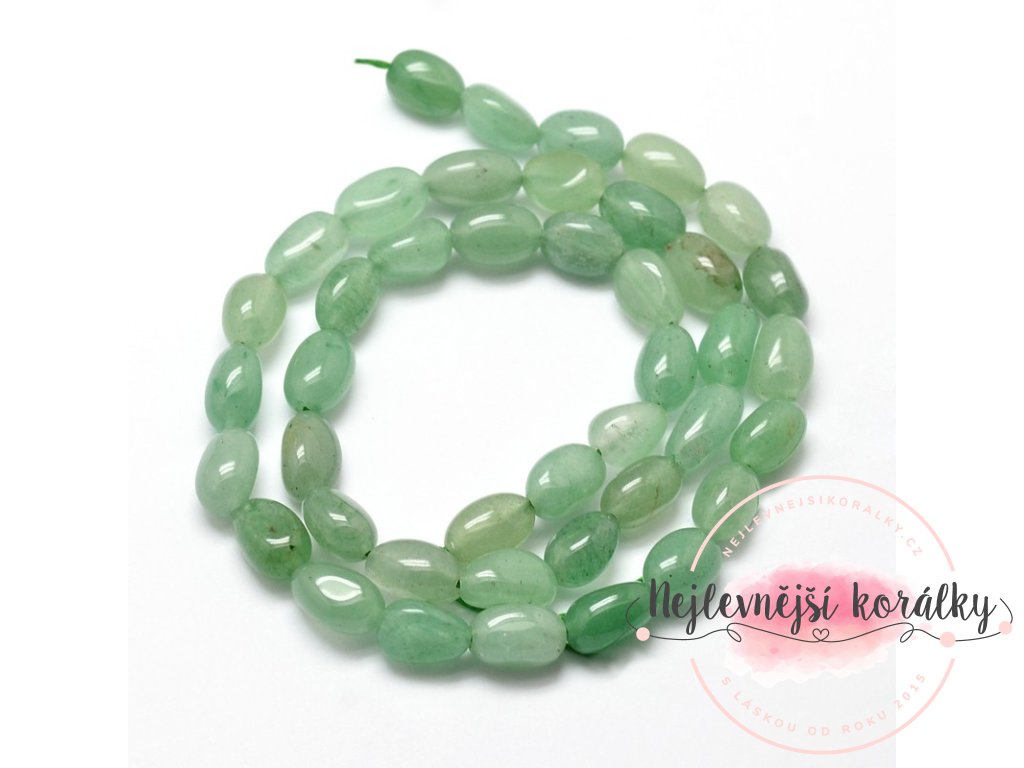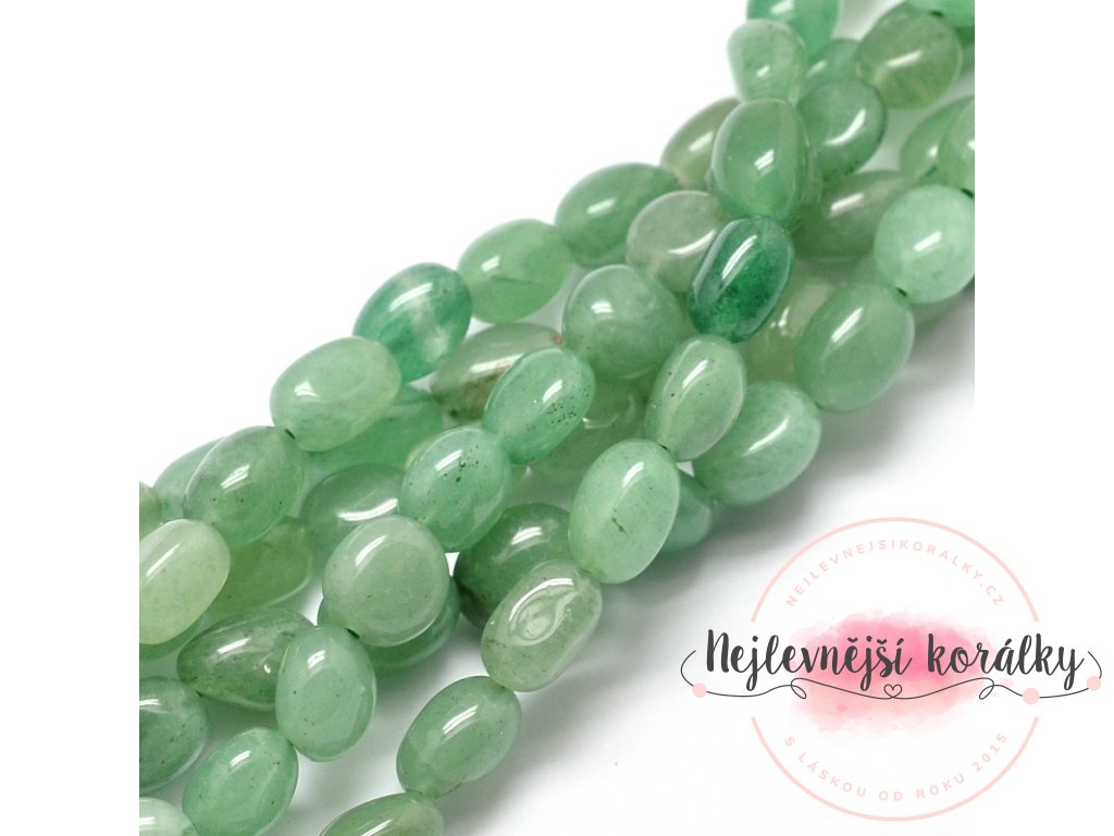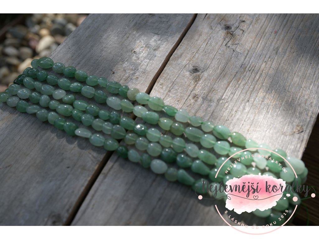 Přírodní korálky z minerálu avanturín ve tvaru nugetek o délce 5 ~ 10 mm, šířce 6 ~ 7 mm, hloubce 3 ~ 7 mm.