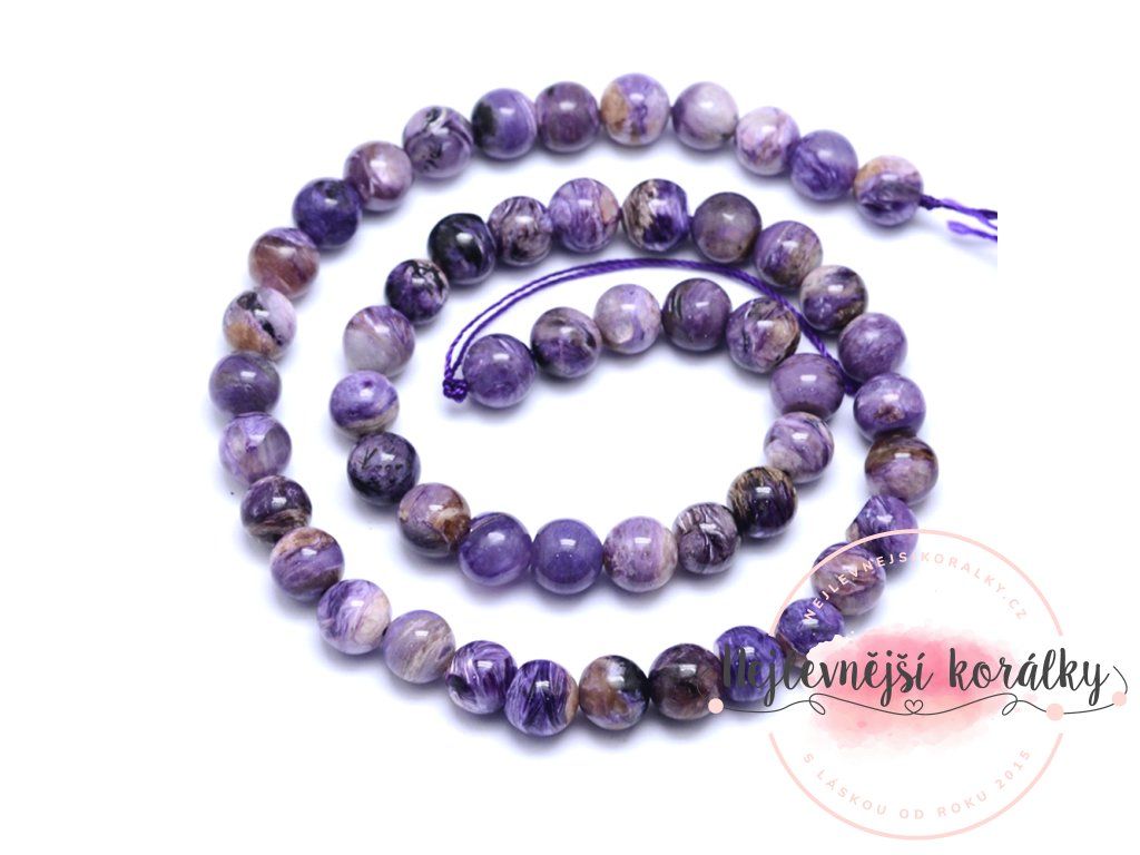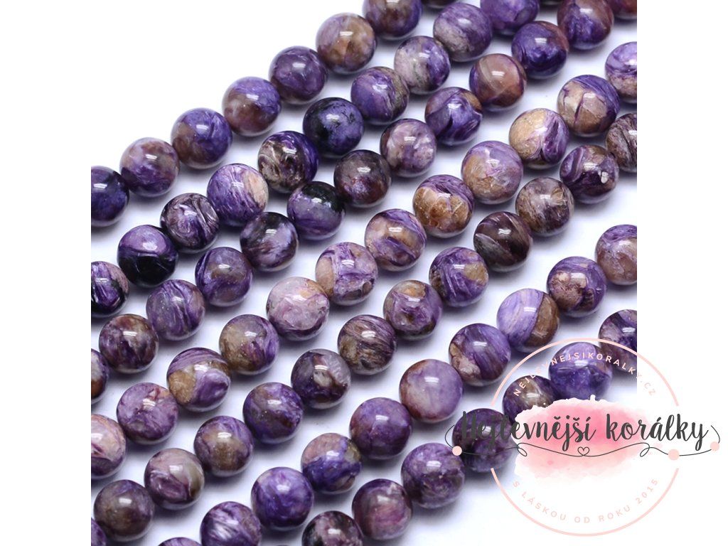 Přírodní korálky z minerálu čaroit o velikosti 8 mm s velikostí průvleku 1 mm.