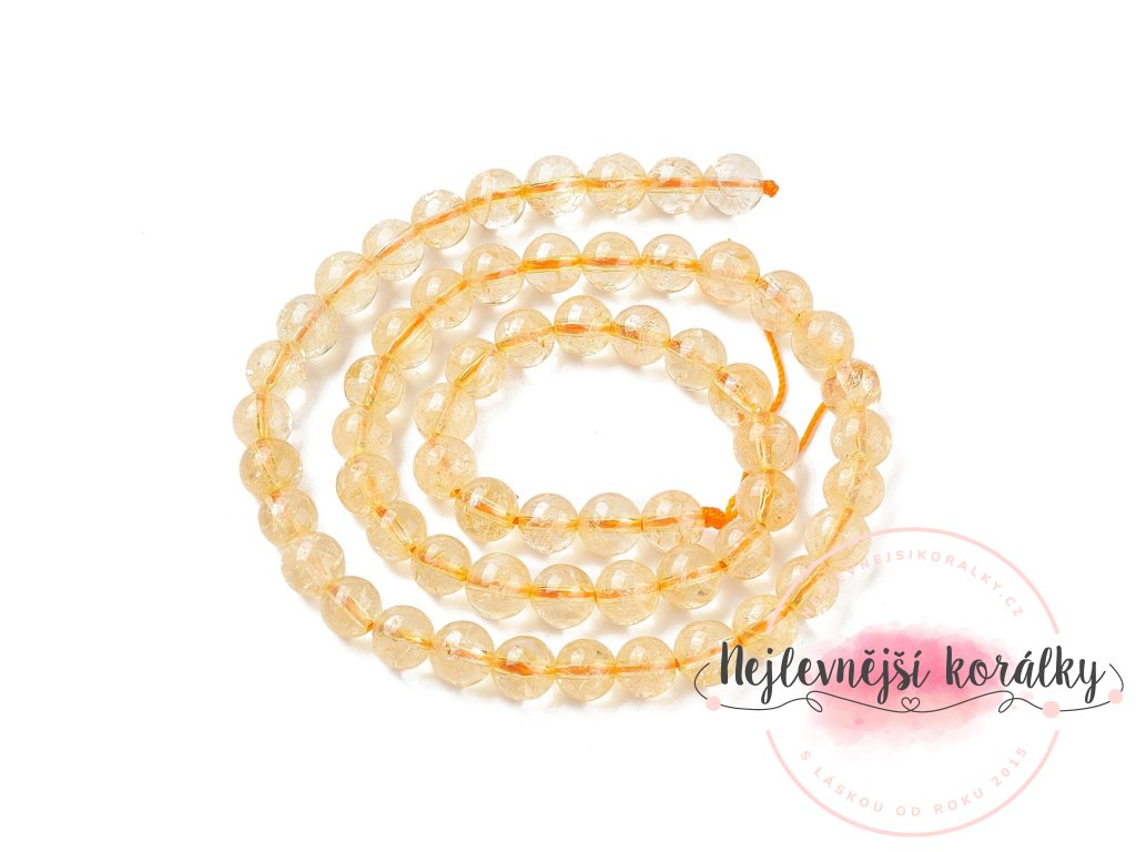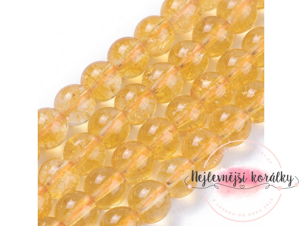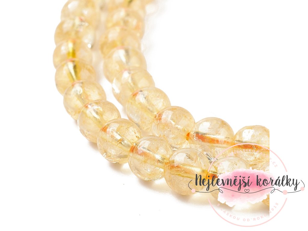 Citrín je překrásný minerál zlatavě medové barvy, velmi příjemně se nosí. V různých sériích může mít i různé množství příměsí, některé jsou více či méně čiré, jiné mají bělavý zákal - ten ale není kazem, naopak vytvořený výrobek ozvláštní a zvýrazní jinak světlou barvu korálku.