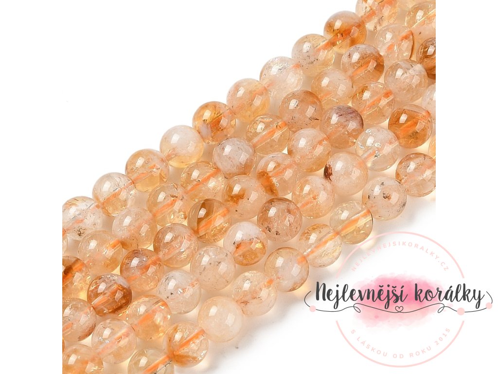 Citrín je překrásný minerál zlatavě medové barvy, velmi příjemně se nosí. V různých sériích může mít i různé množství příměsí, některé jsou více či méně čiré, jiné mají bělavý zákal - ten ale není kazem, naopak vytvořený výrobek ozvláštní a zvýrazní jinak světlou barvu korálku.
