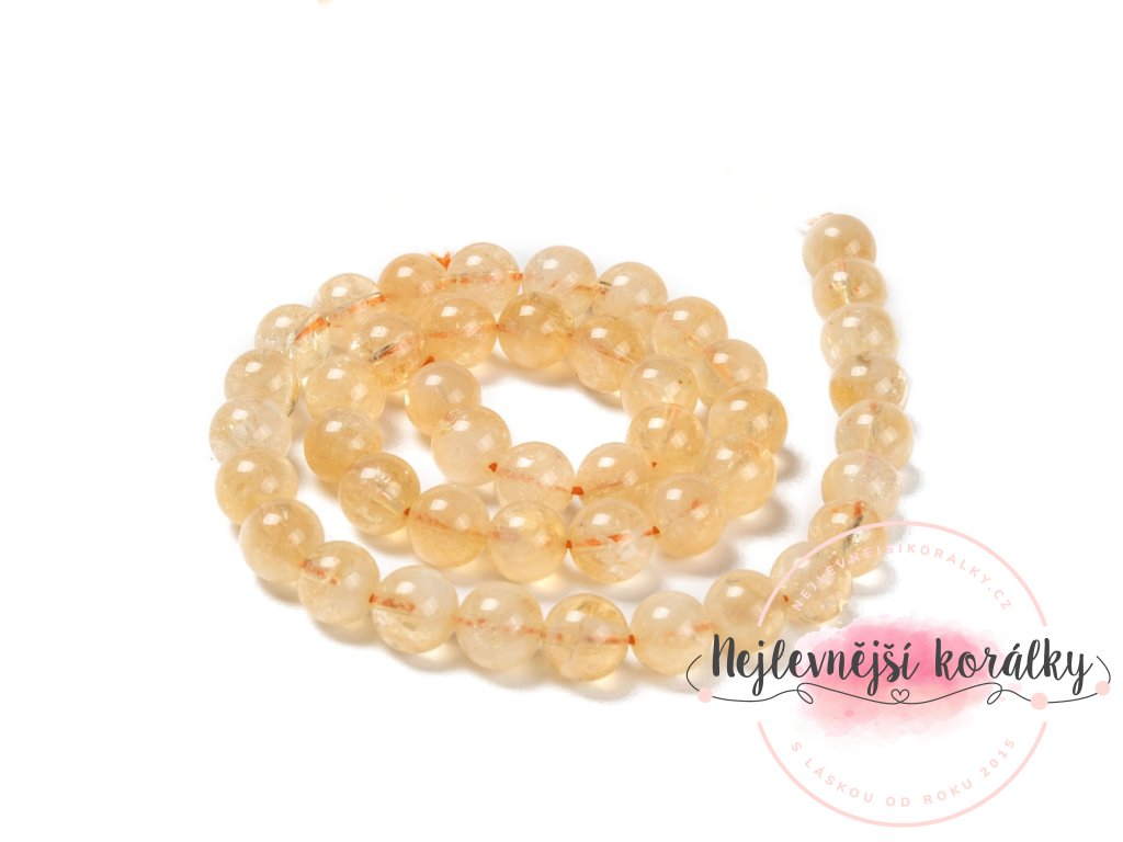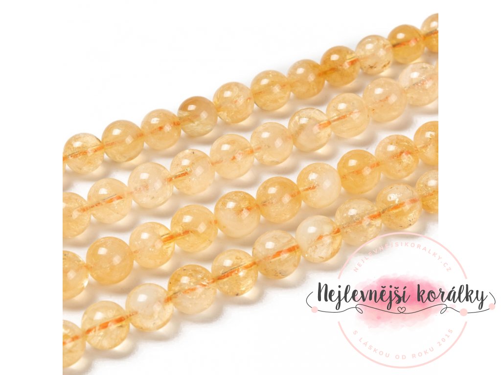 Citrín je překrásný minerál zlatavě medové barvy, velmi příjemně se nosí. V různých sériích může mít i různé množství příměsí, některé jsou více či méně čiré, jiné mají bělavý zákal - ten ale není kazem, naopak vytvořený výrobek ozvláštní a zvýrazní jinak světlou barvu korálku.