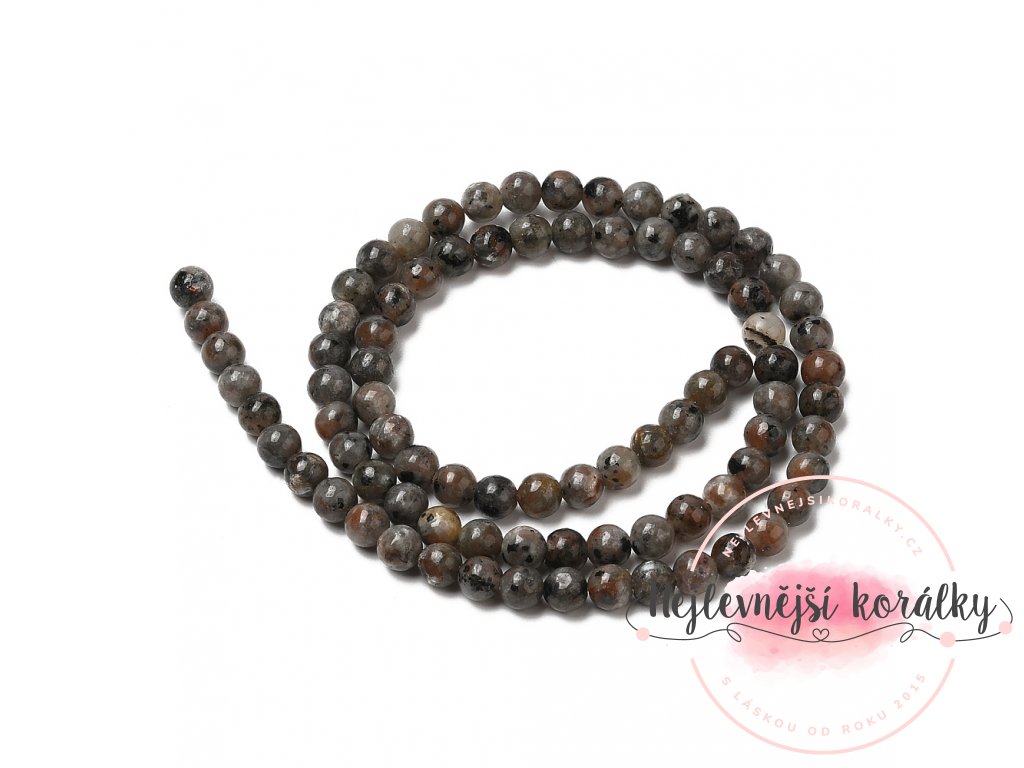 Korálky z přírodního minerálu syenit s fluorescenční složkou.