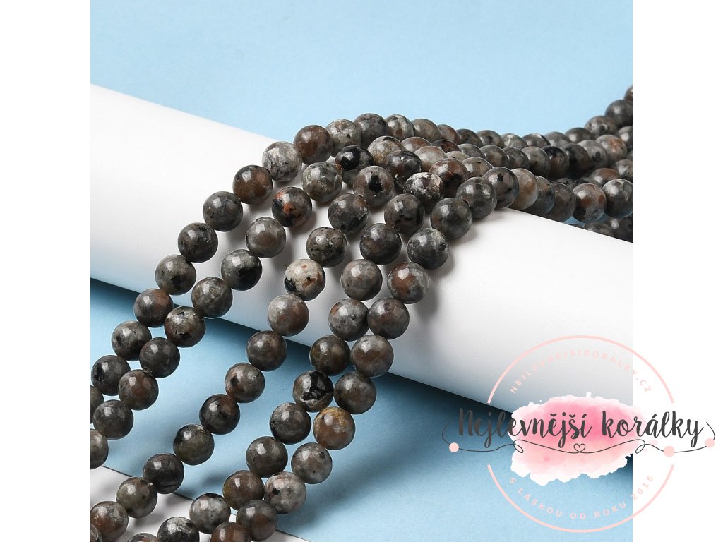 Korálky z přírodního minerálu syenit s fluorescenční složkou.