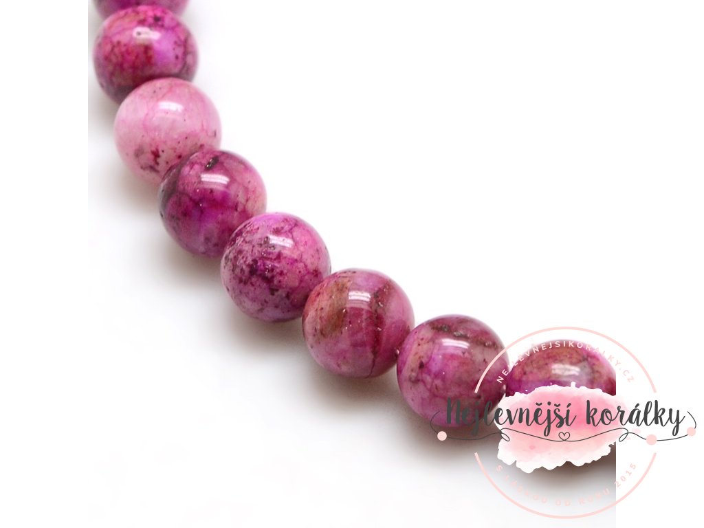 Korálky jsou přírodní a jsou uměle dobarvovány do růžovofialových odstínů.