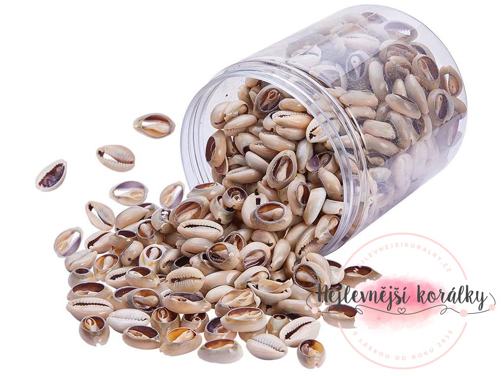Kauri mušle v přírodním provedení řezaná do šířky 6-8 mm k navlečení vytvořeným otvorem, díky kterému lze mušle zavěsit i jako přívěsek.