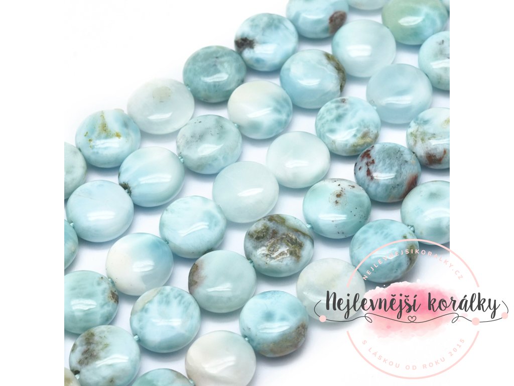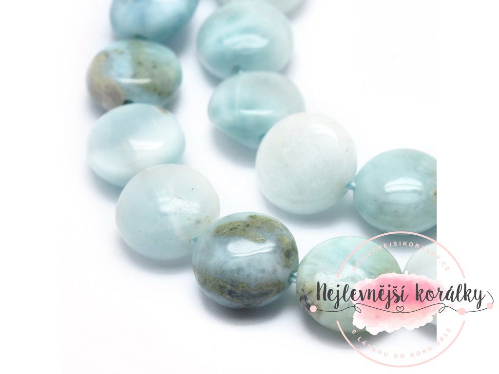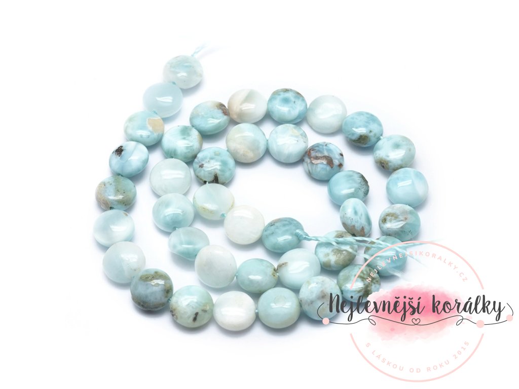 Přírodní korálky z minerálu larimar v unikátním placatém provedení - vhodný jako solitér.