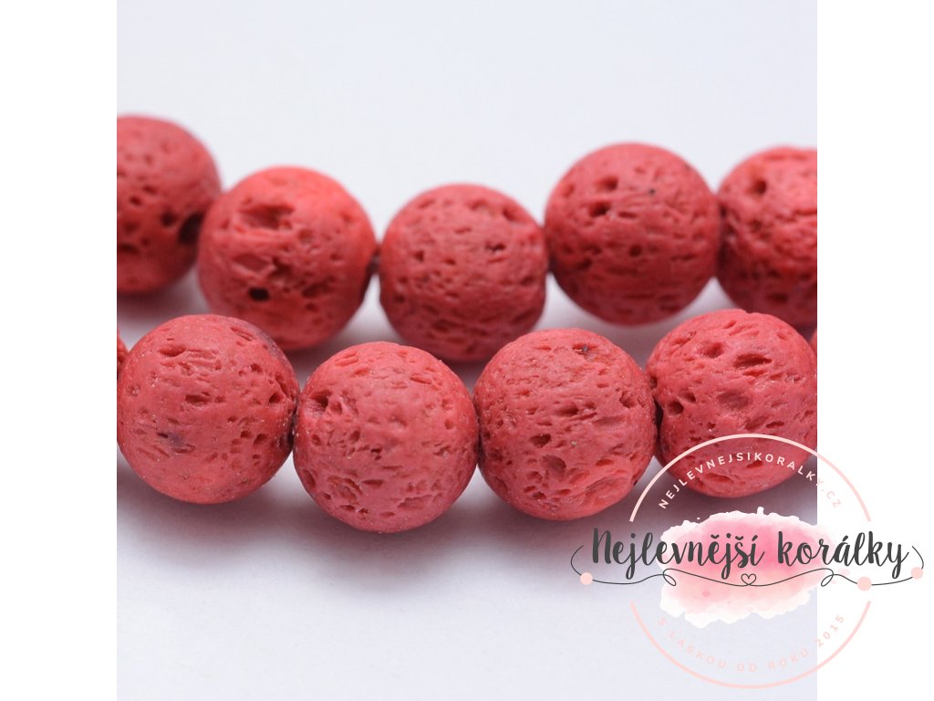 Lávové korálky mají pórovitou strukturu a jsou velmi lehké. Nadchnou Vás nejen drsným povrchem, ale také zvláštními nepravidelnými póry, tvořícími v korálku až drobounké jeskyně. Lávová hornina je extrémně lehká a jako jediná z minerálů plave v surovém stavu na hladině vody. Tóny barev se mohou mírně lišit, a právě to dělá z přírodních lávových korálků úžasný prvek pro výrobu vlastních šperků či ozdob. Díky struktuře se dají s úspěchem uměle dobarvit a tak rozšiřují své využití.