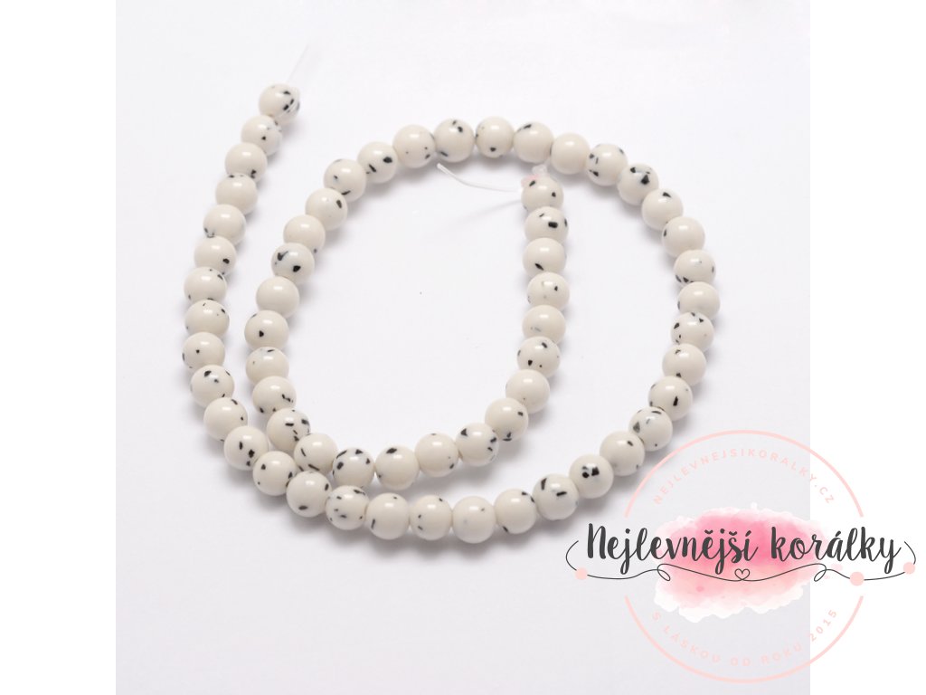 Přírodní korálky z minerálu nefrit v bílobéžovém provedení s černými skvrnami jako imitace Bodhi korálků.
