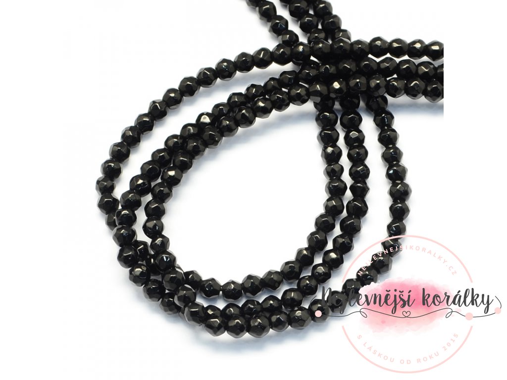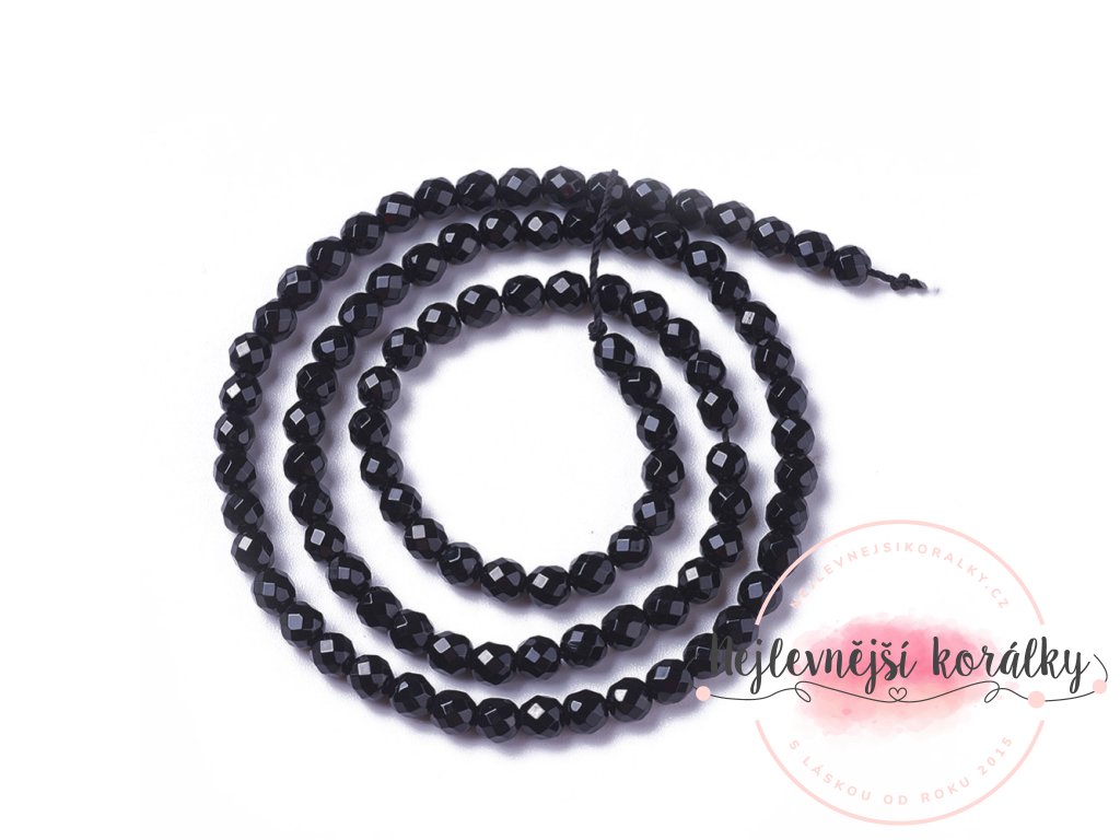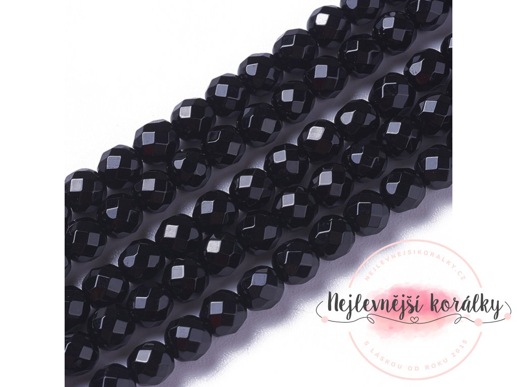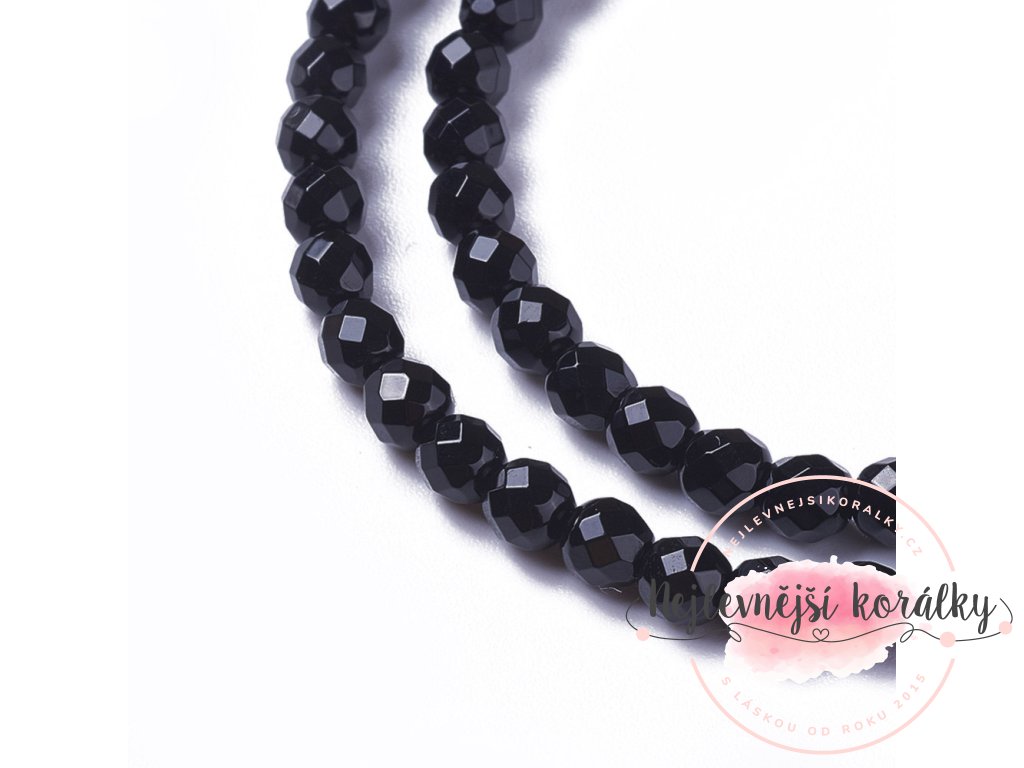 Onyxové korálky mají celý lesklý povrch s jemným fasetovým broušením.