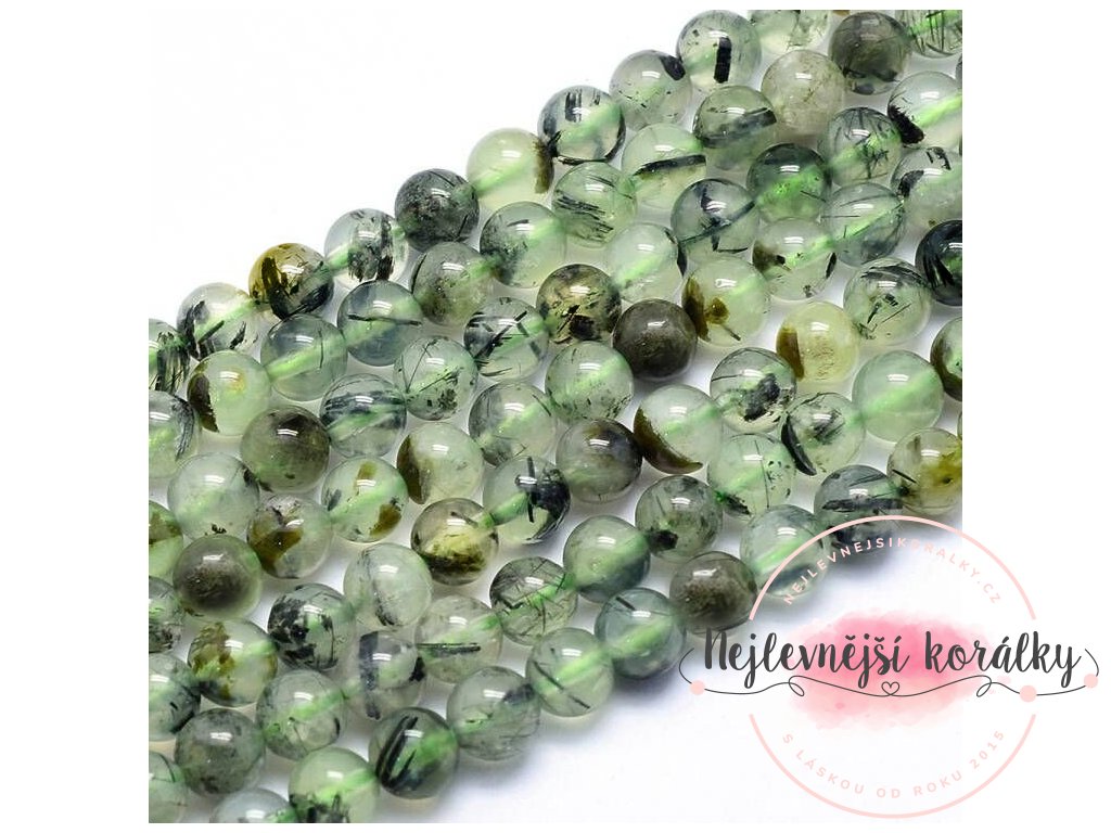 Přírodní korálky z minerálu prehnit s epidotem.