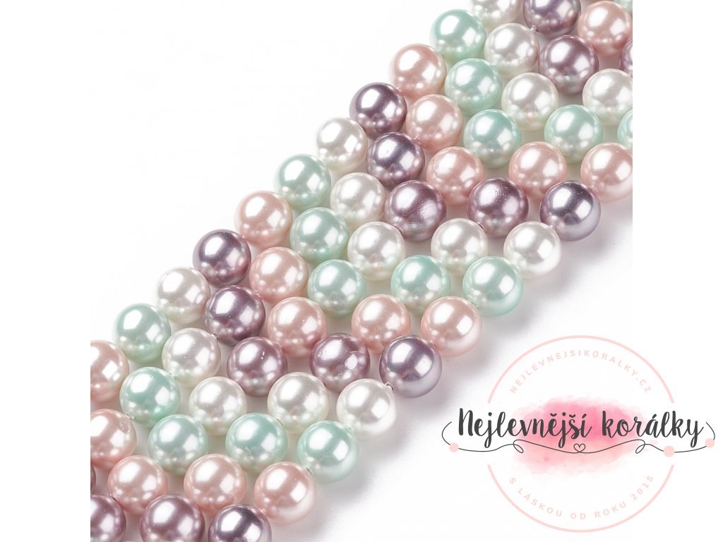 Shell perly - mentolovo-šeříkový mix - ∅ 8 mm - 1 ks