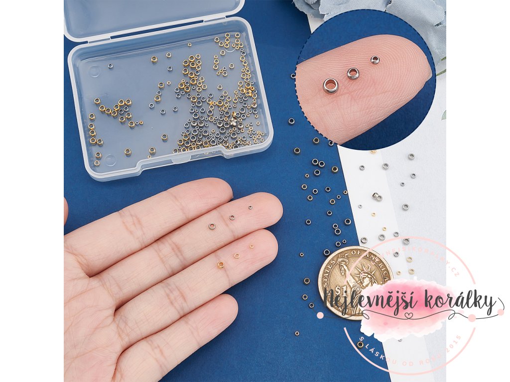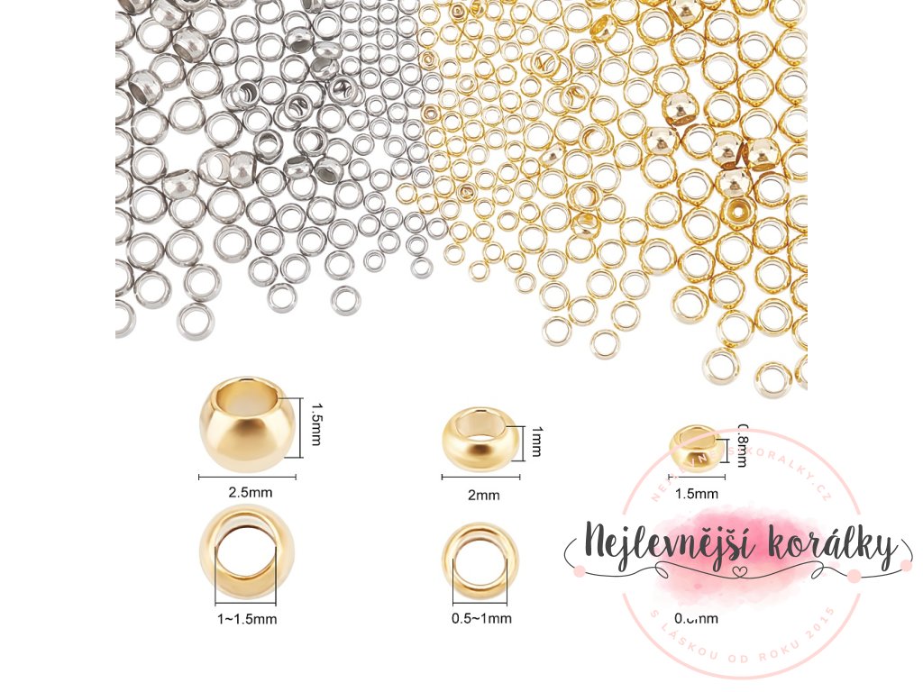 Sada korálků z nerezové oceli - platinové a zlaté - 1,5 - 2 - 2,5 mm - 300 ks
