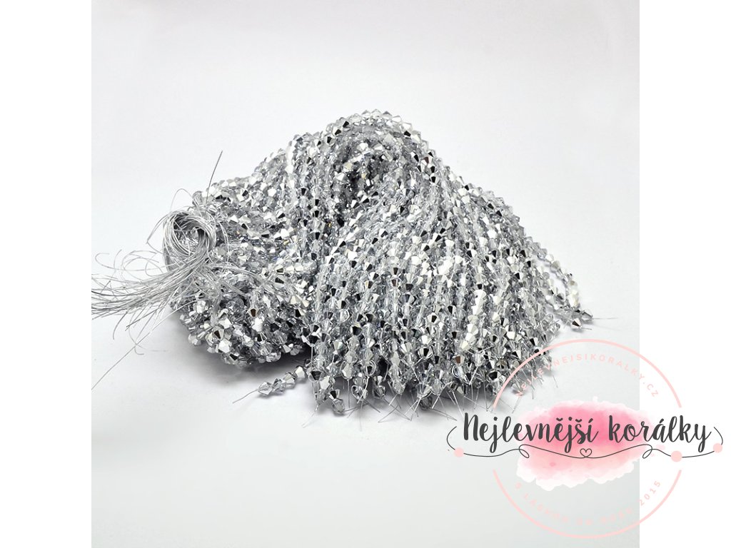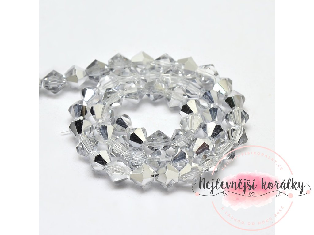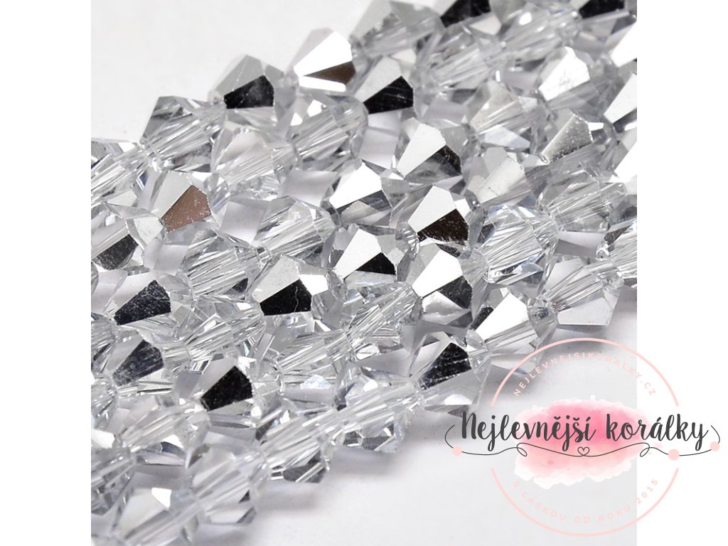 Skleněné korálky - broušené - imitace Swarovski - čiré a platinové - 3 x 3 mm - 10 ks