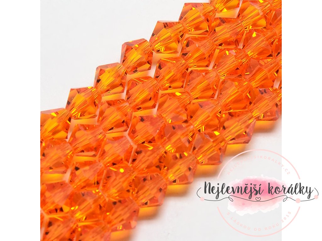 Skleněné korálky - broušené - imitace Swarovski - neonově oranžové - 4 x 4 mm - 10 ks