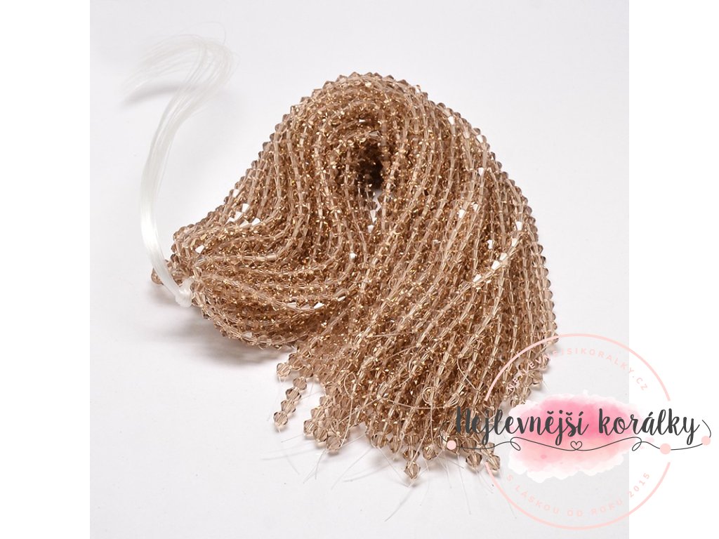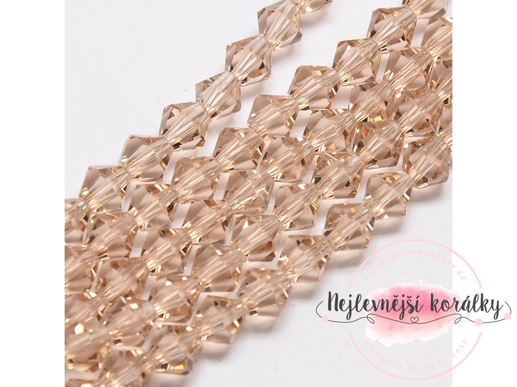 Skleněné korálky - broušené - imitace Swarovski - šampaň - 4 x 4 mm - 10 ks