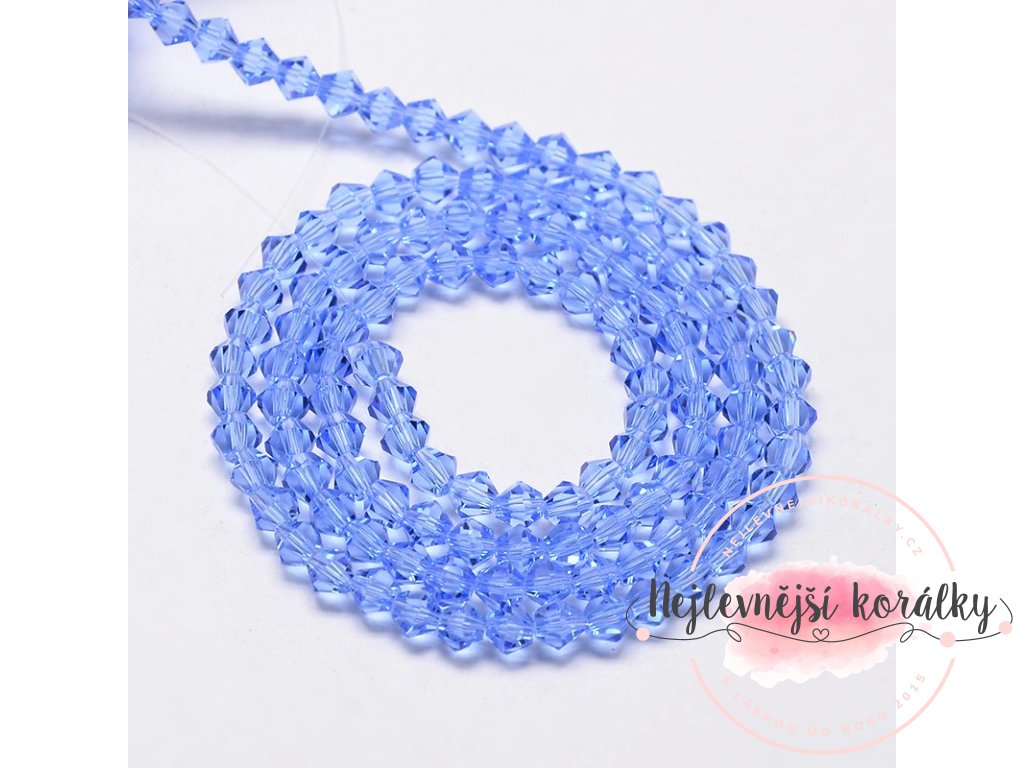 Skleněné korálky - broušené - imitace Swarovski - světle modré - 4 x 4 mm - 10 ks