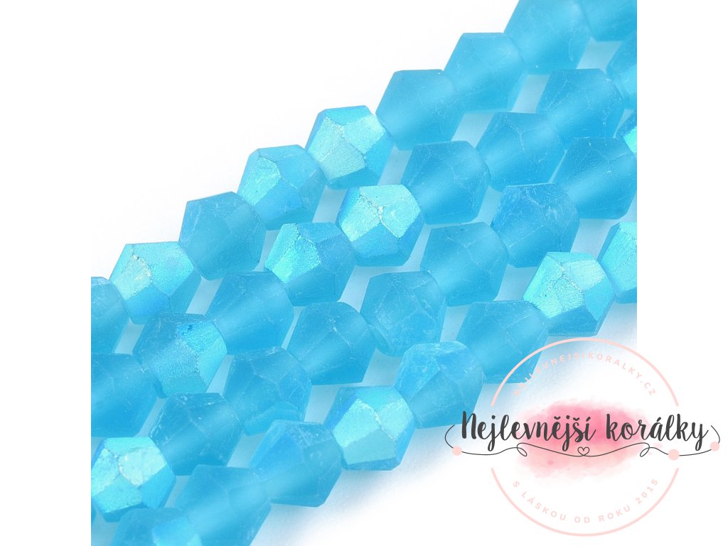 Skleněné korálky - broušené - matné - imitace Swarovski - modré - 4 x 4 mm - 10 ks