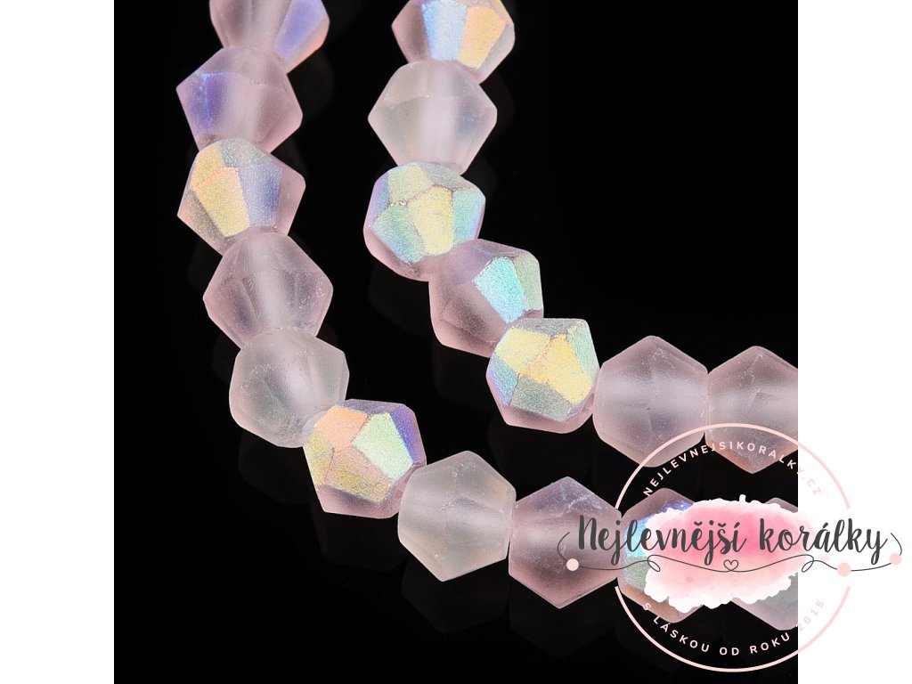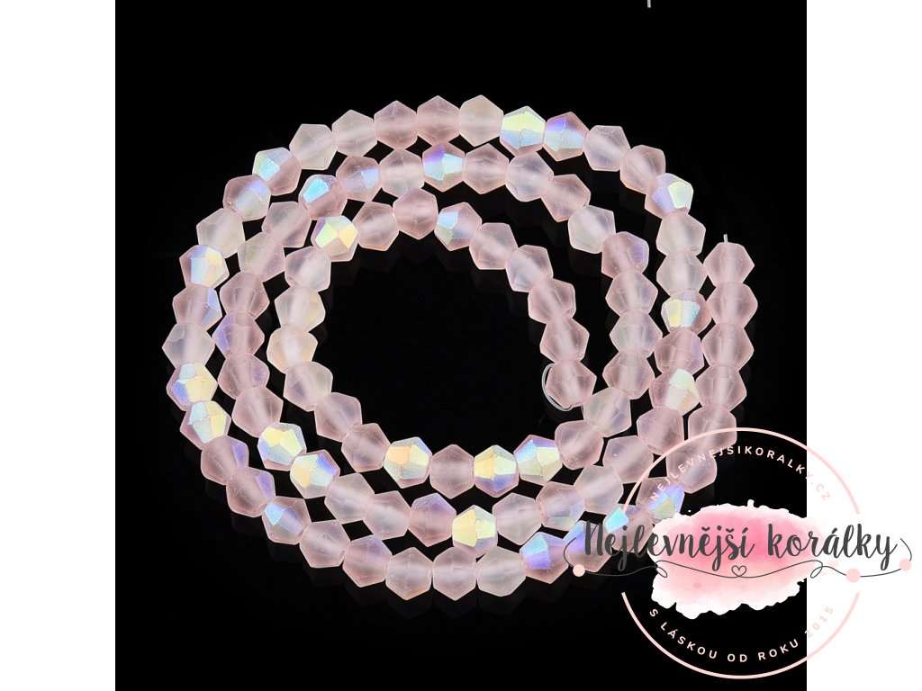 Skleněné korálky - broušené - matné - imitace Swarovski - růžové - 4 x 4 mm - 10 ks