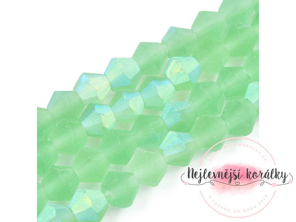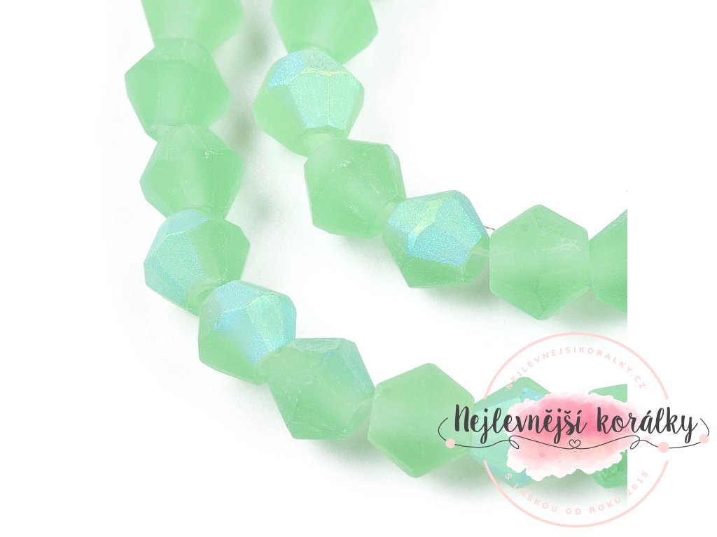 Skleněné korálky - broušené - matné - imitace Swarovski - světle zelené - 4 x 4 mm - 10 ks