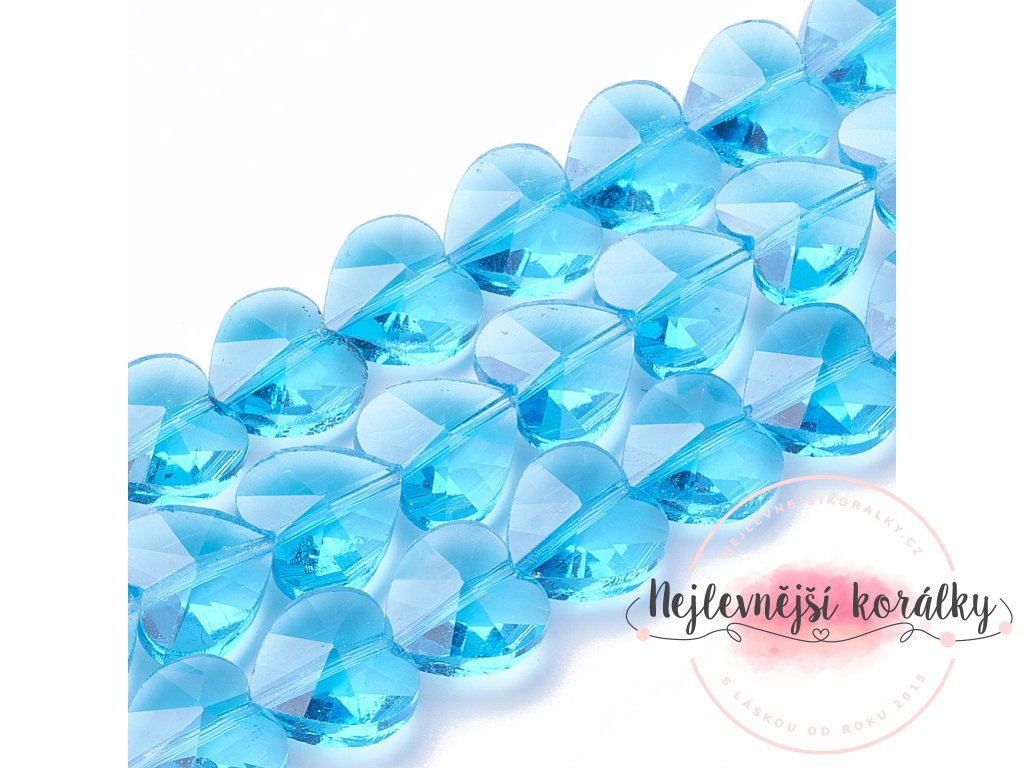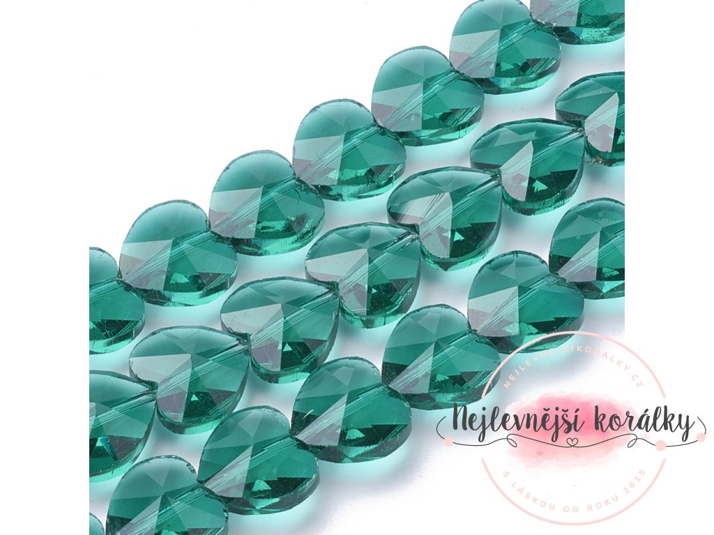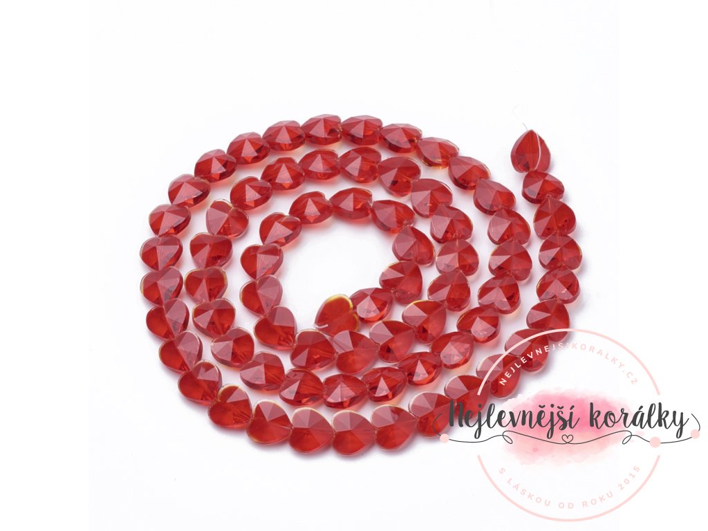 Skleněné korálky ve tvaru broušeného srdíčka v průsvitném provedení o velikosti 10 x 10 x 6 mm s velikostí průvleku 1 mm.