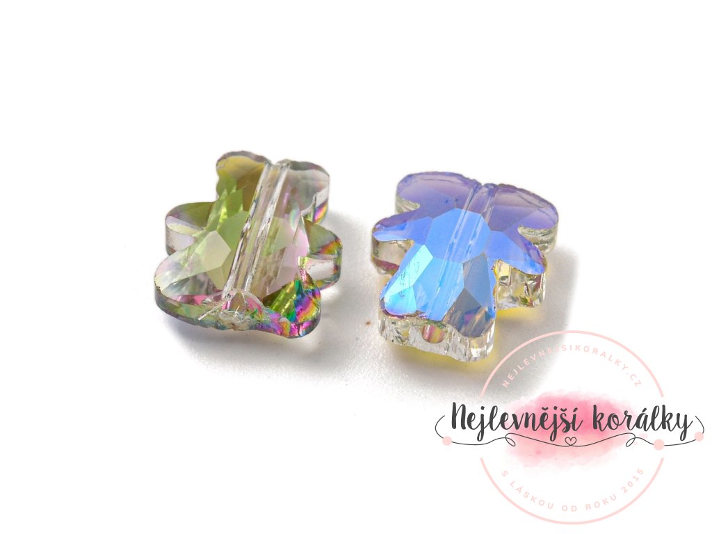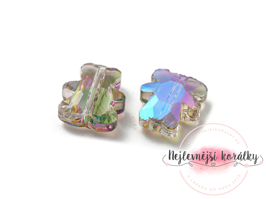 Roztomilé skleněné korálky ve tvaru medvídka s broušeným povrchem a duhovou (AB) elektrolytickou úpravou, která vytváří jemný lesk a hloubku barev. Díky své detailní podobě a hravému vzhledu dodají vašim šperkům originální a přívětivý charakter.