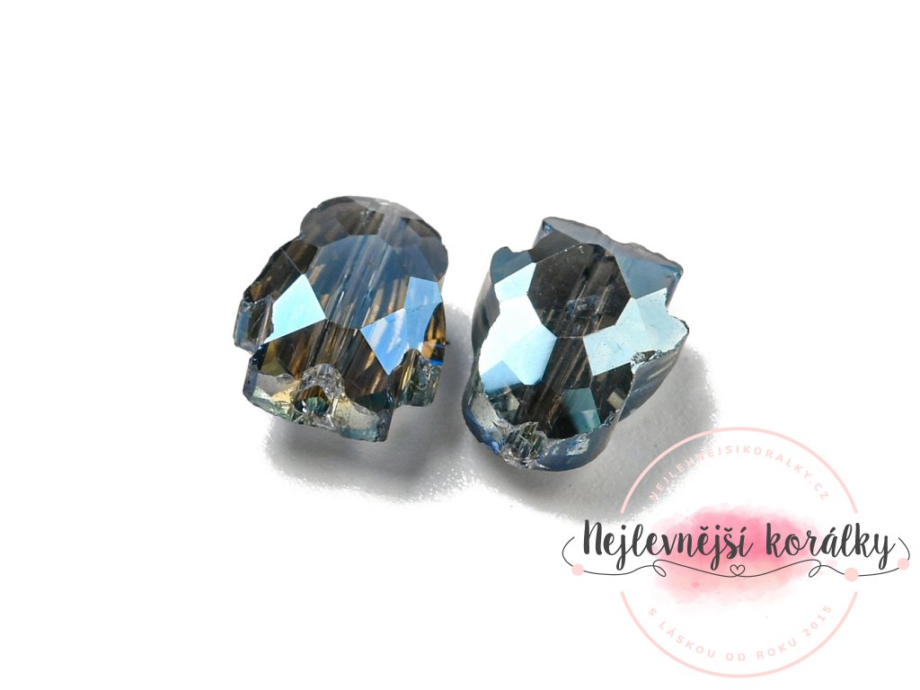 Okouzlující skleněné korálky ve tvaru tučňáka s broušeným povrchem a elektrolytickou úpravou, která jim dodává zářivý celoplošný duhový efekt. Jejich jedinečný tvar a ocelově modrý odstín přitahují pozornost a dodávají každému šperku šmrnc originality.