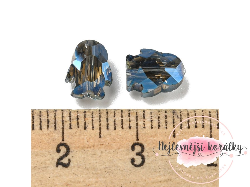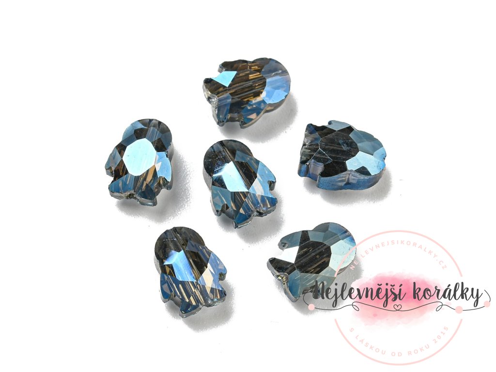 Skleněné korálky s kovovým leskem – tvar tučňák, broušené, cca 8 × 6,5 × 4,5 mm, průvlek 1 mm