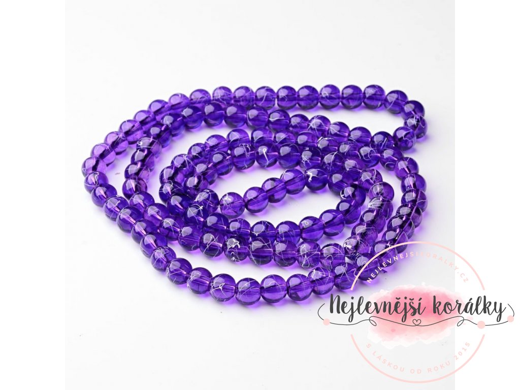 Skleněné korálky s ve fialovém provedení s originálním bílým žíháním o průměru 8 mm a velikostí průvleku 1,3 - 1,6 mm.