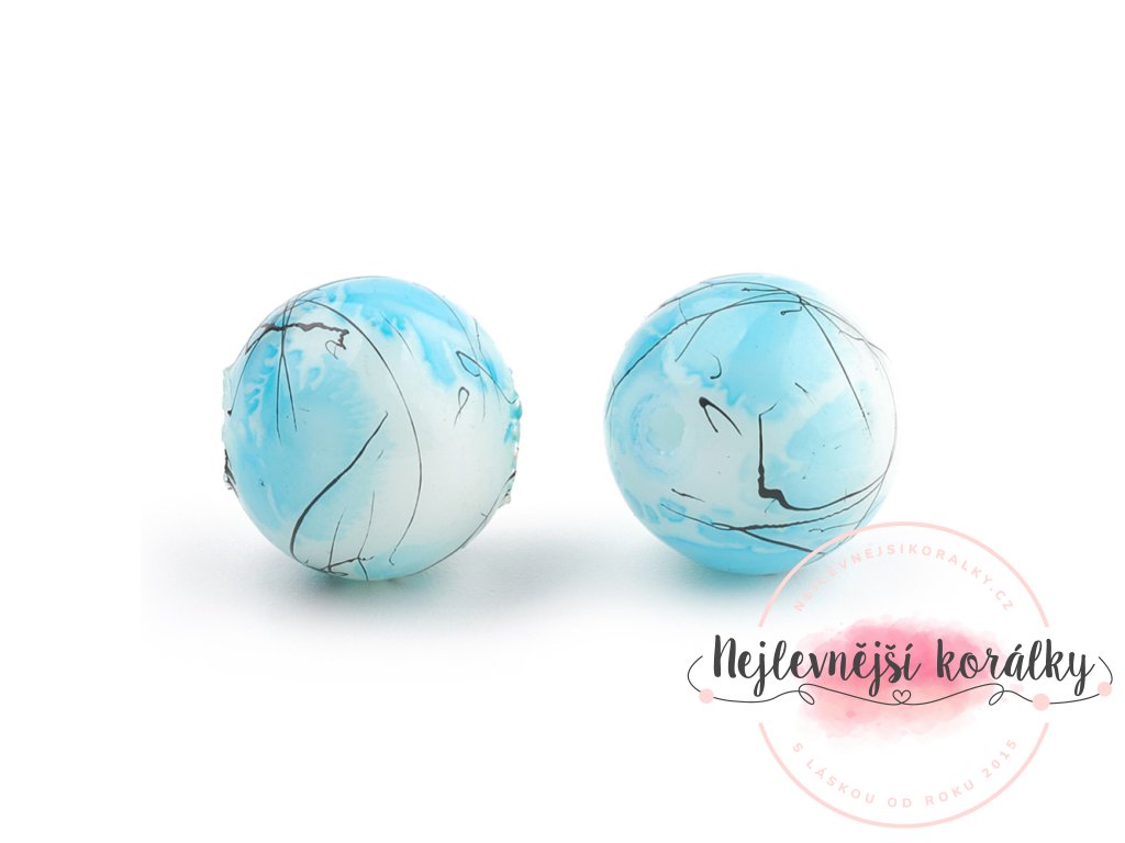 Skleněné korálky - malované - modro bílé - ∅ 6 mm - 10 ks