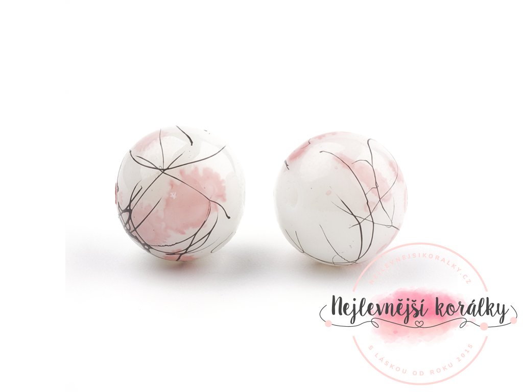 Skleněné korálky - malované - starorůžovo bílé - ∅ 8 mm - 10 ks