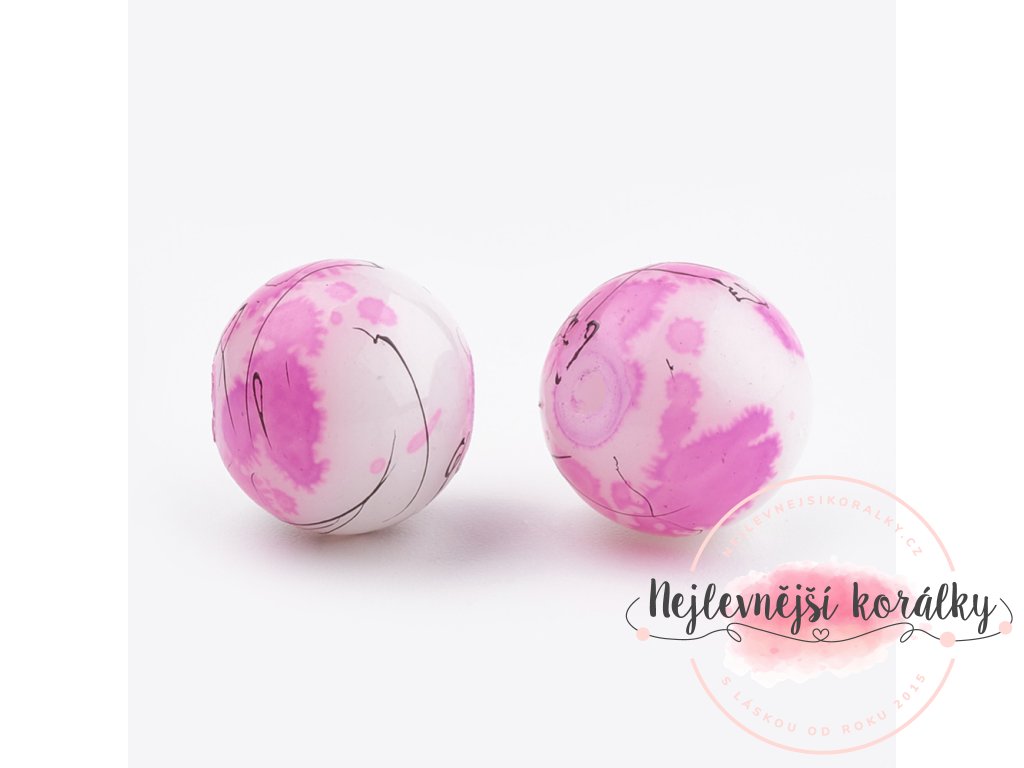 Skleněné korálky - malované - tmavě růžovo bílé - ∅ 6 mm - 10 ks