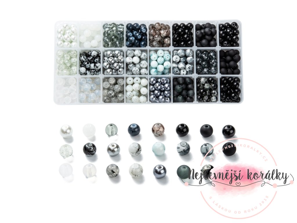 Skleněné korálky - mega mix - ∅ 8 mm - krabička