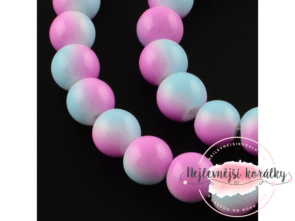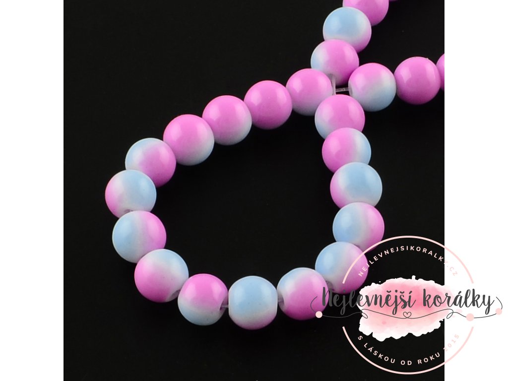 Skleněné korálky - růžovo modré - ∅ 6 mm - 10 ks