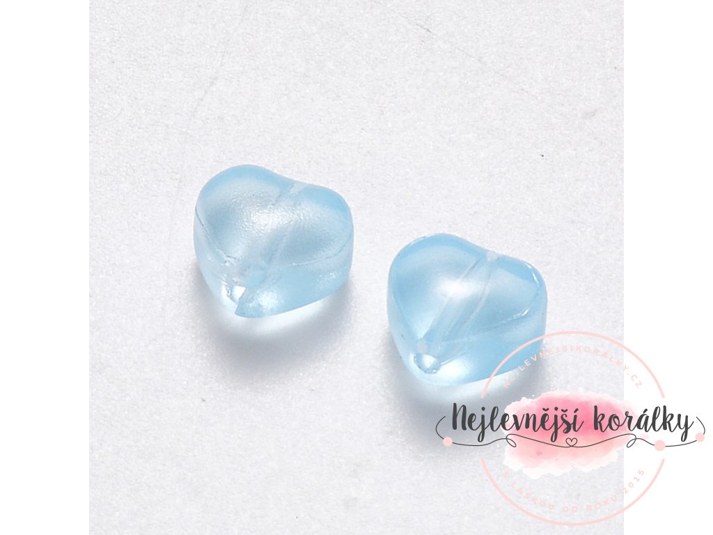 Skleněné korálky ve tvaru srdce v modrém průsvitném provedení o velikosti 6 x 6 x 4 mm s velikostí průvleku 0,7 mm.