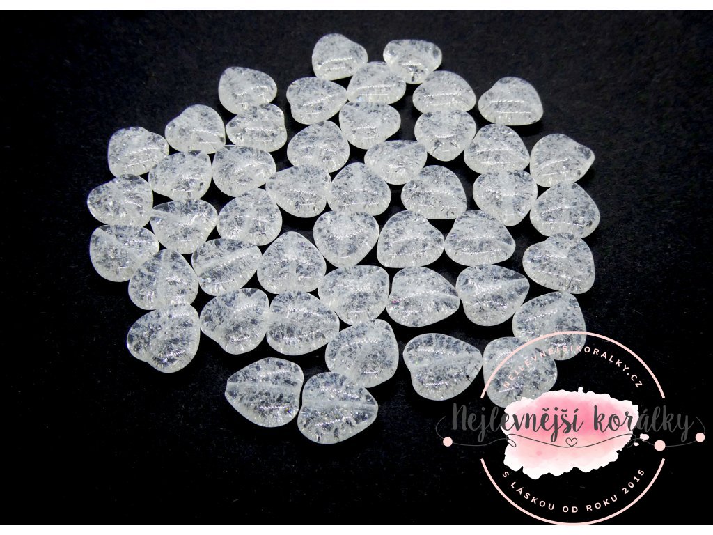 Skleněné mačkané korálky ve tvaru srdce v transparentním praskaném provedení o velikosti 12 x 12 mm s velikostí průvleku 1,2 mm.