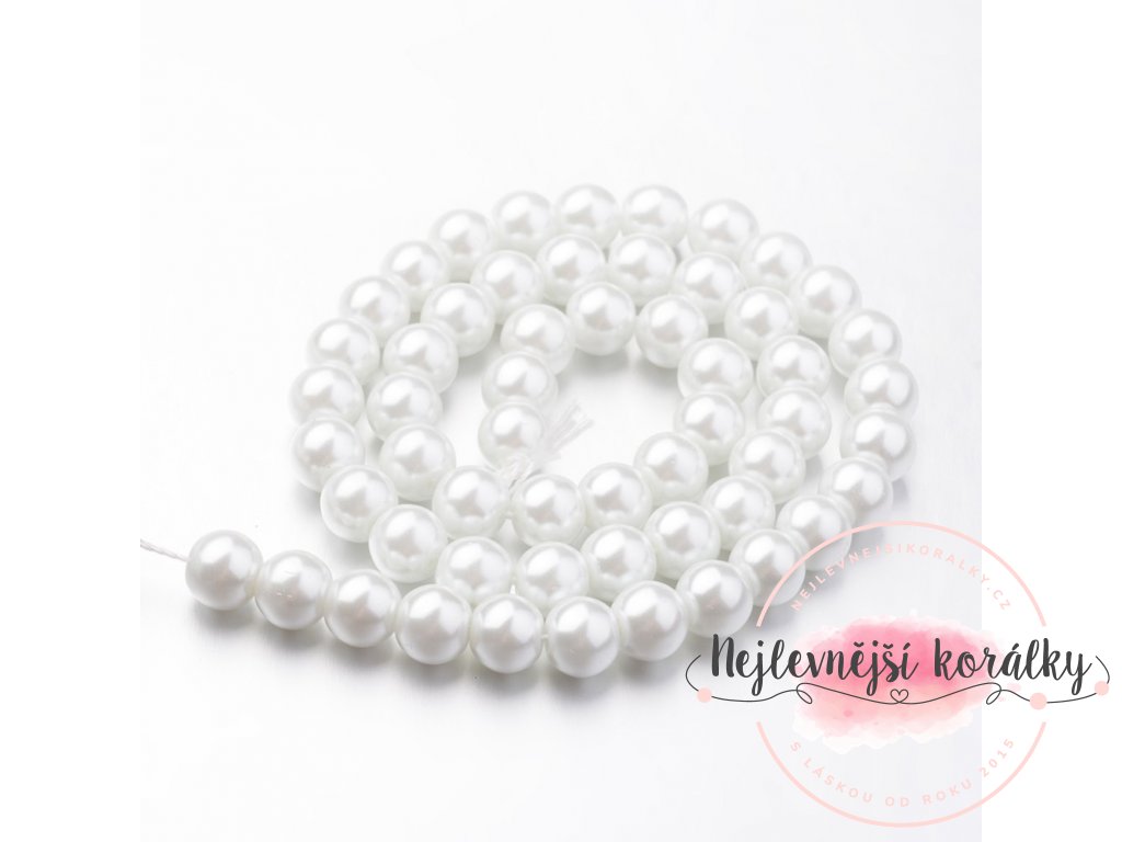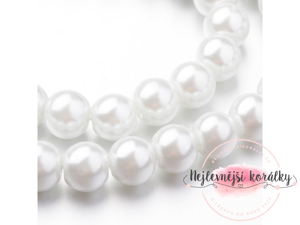 Voskované perly v bílém provedení o velikosti 8 mm s velikostí průvleku cca 1,2 - 1,5 mm.