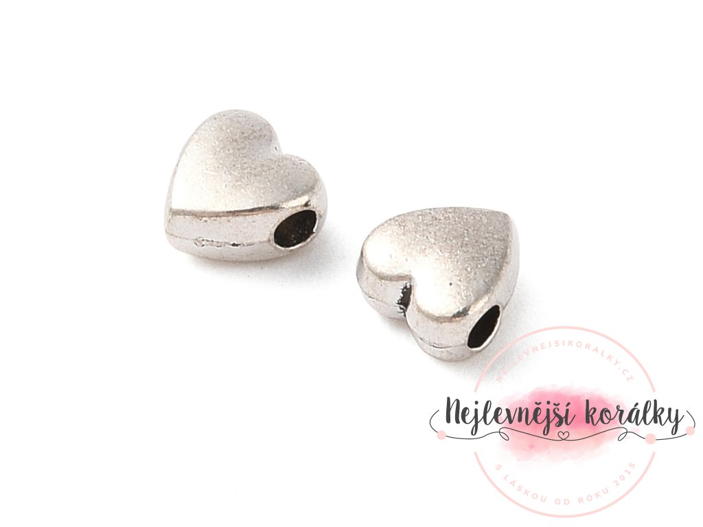 Kovový korálek - starostříbrný - srdce - 7 x 7 x 4 mm - 1 ks
