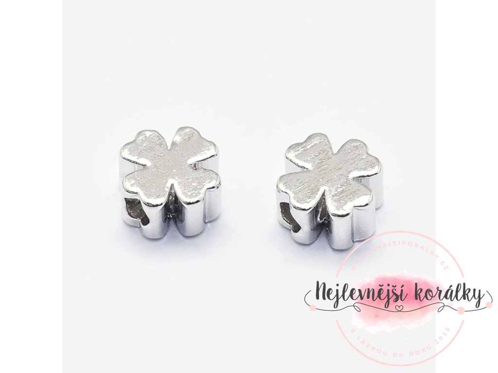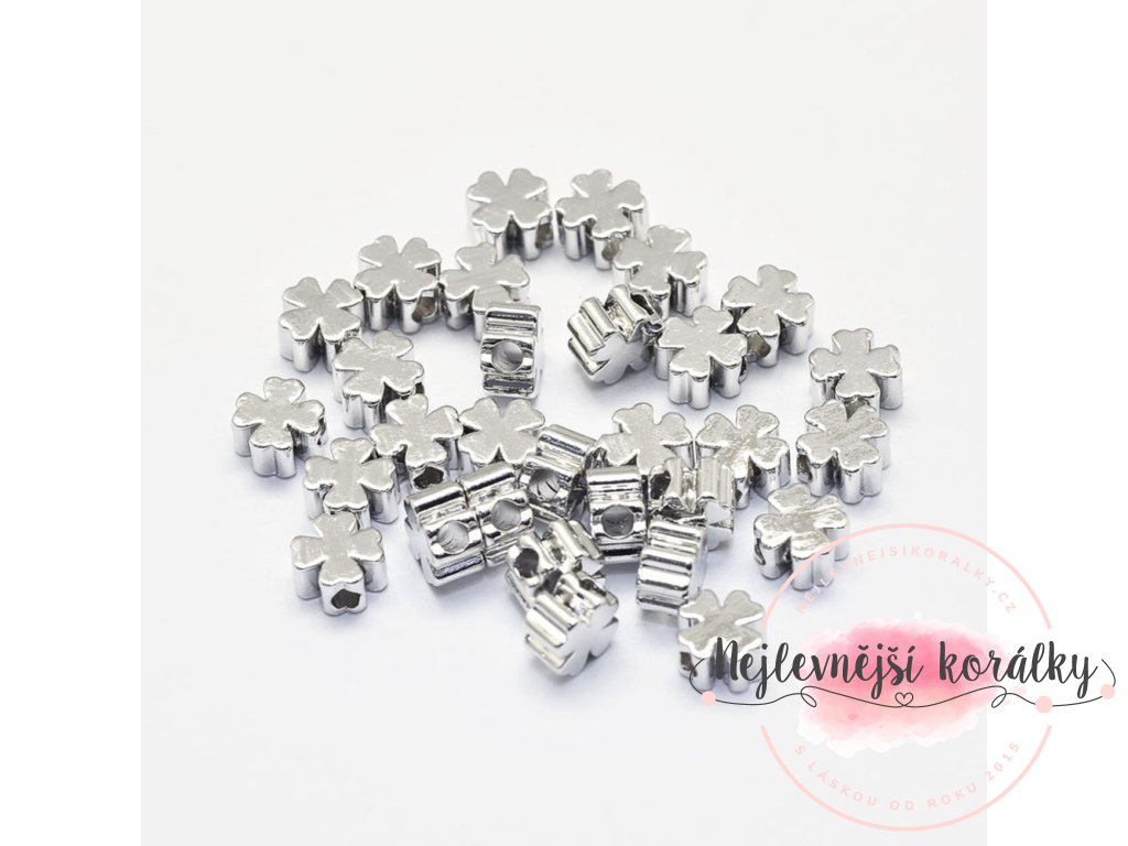 Mosazný korálek - čtyřlístek- platinový - 5 mm x 5 mm - 1 ks