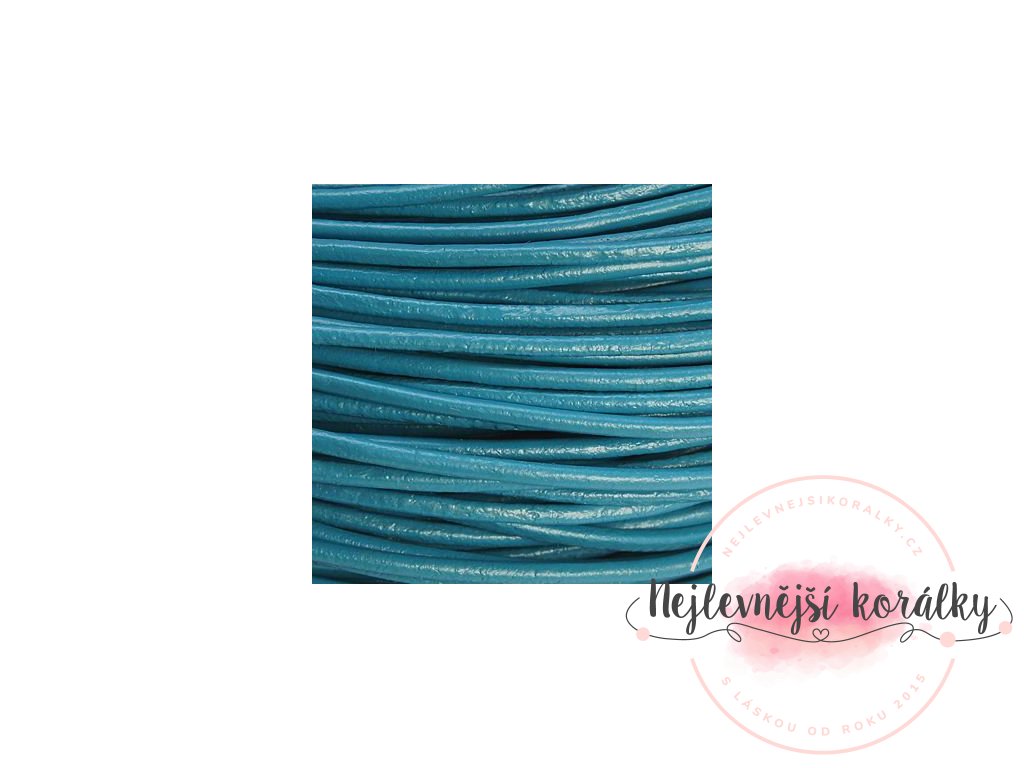 Kvalitní řemínek z pravé kravské kůže o průměru 1 mm v tyrkysovém provedení.