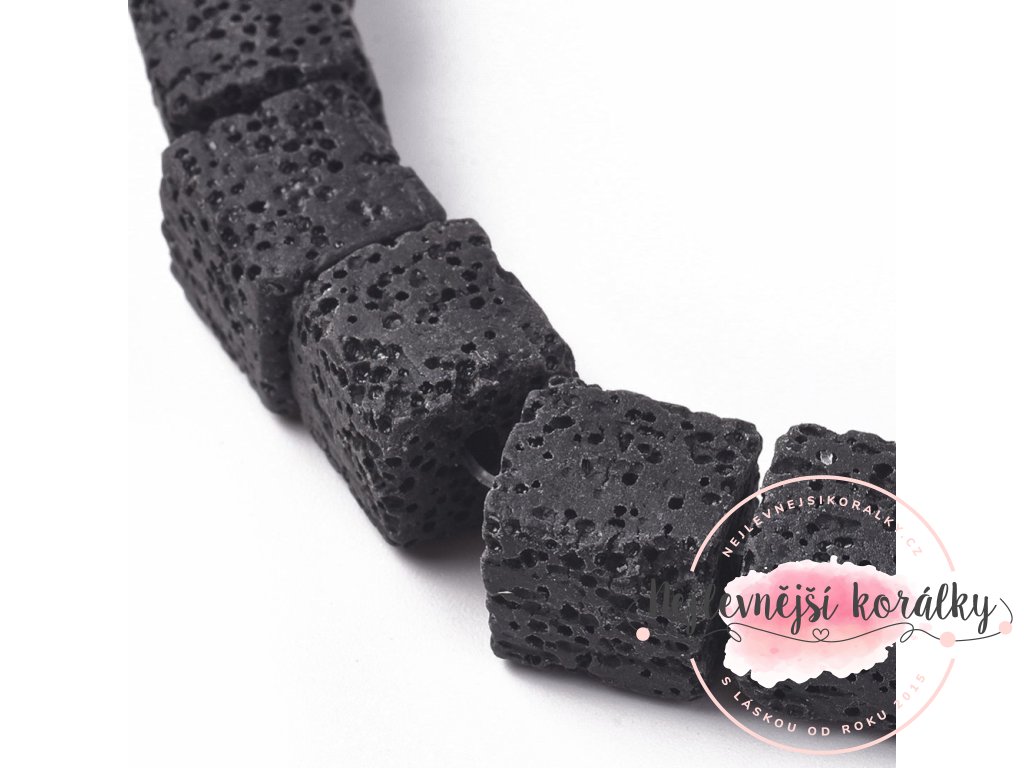 Přírodní lávové korálky - kostka - černá - 12 mm - 1 ks