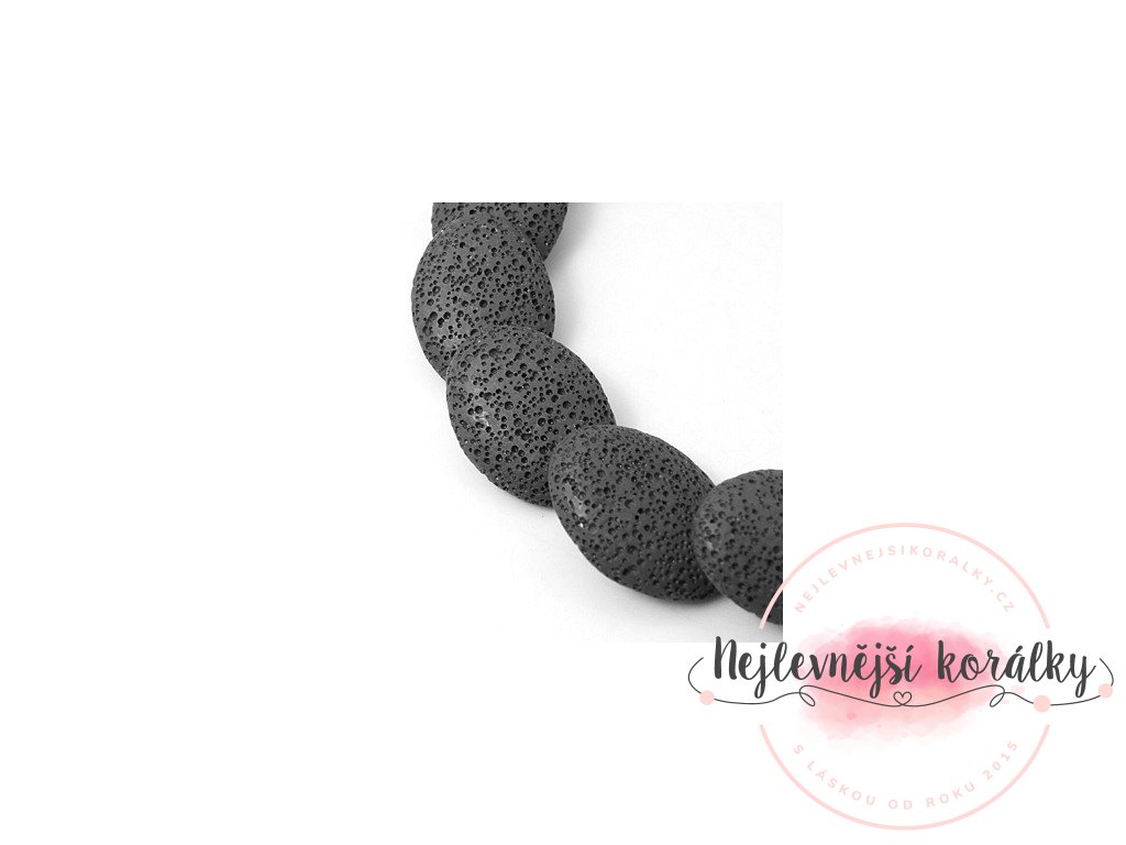 Přírodní lávové korálky - ovál - černý 33 x 24 x 8 mm 1 ks