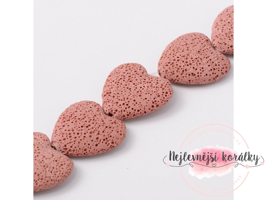 Přírodní lávové korálky - srdce - hnědo růžové - 26-30 mm x 26-30 mm 1 ks