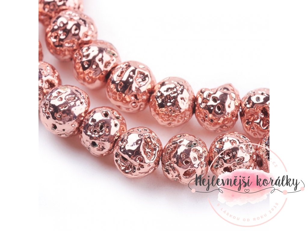 Přírodní pokovená láva - růžově zlatá - ∅ 4 mm - 1 ks