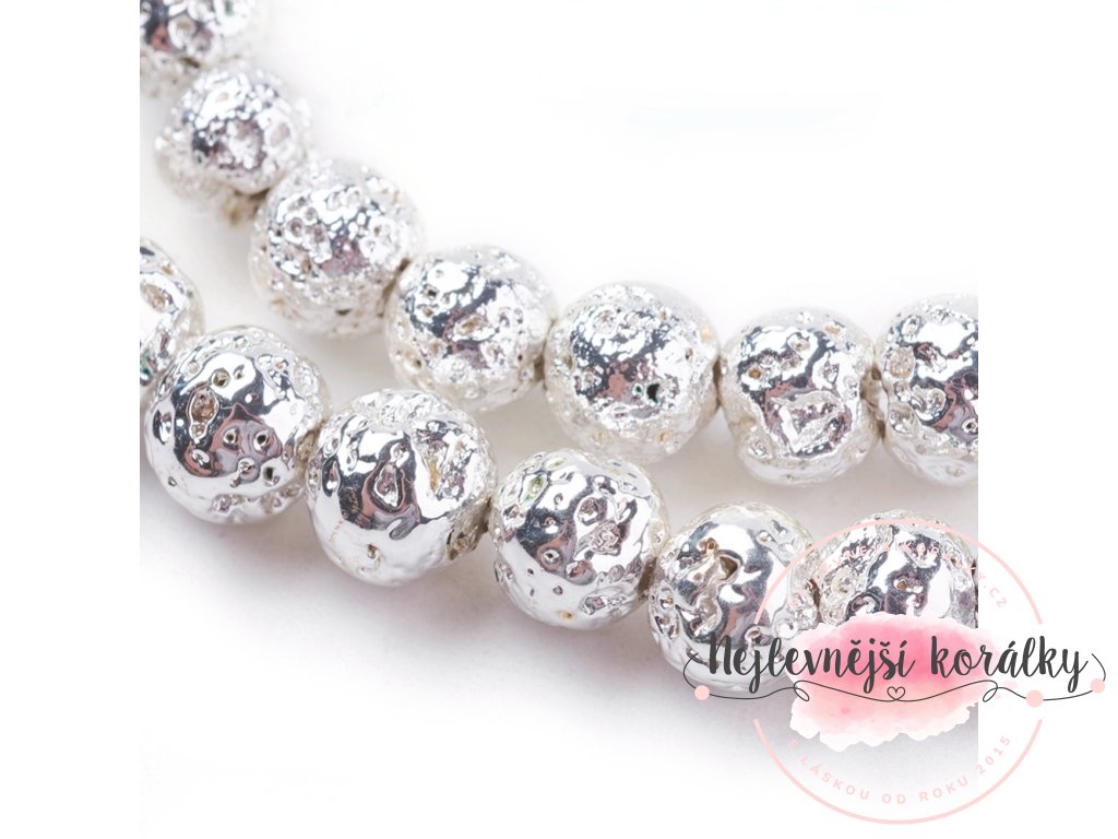 Přírodní pokovená láva - stříbrná - ∅ 6 mm - 1 ks