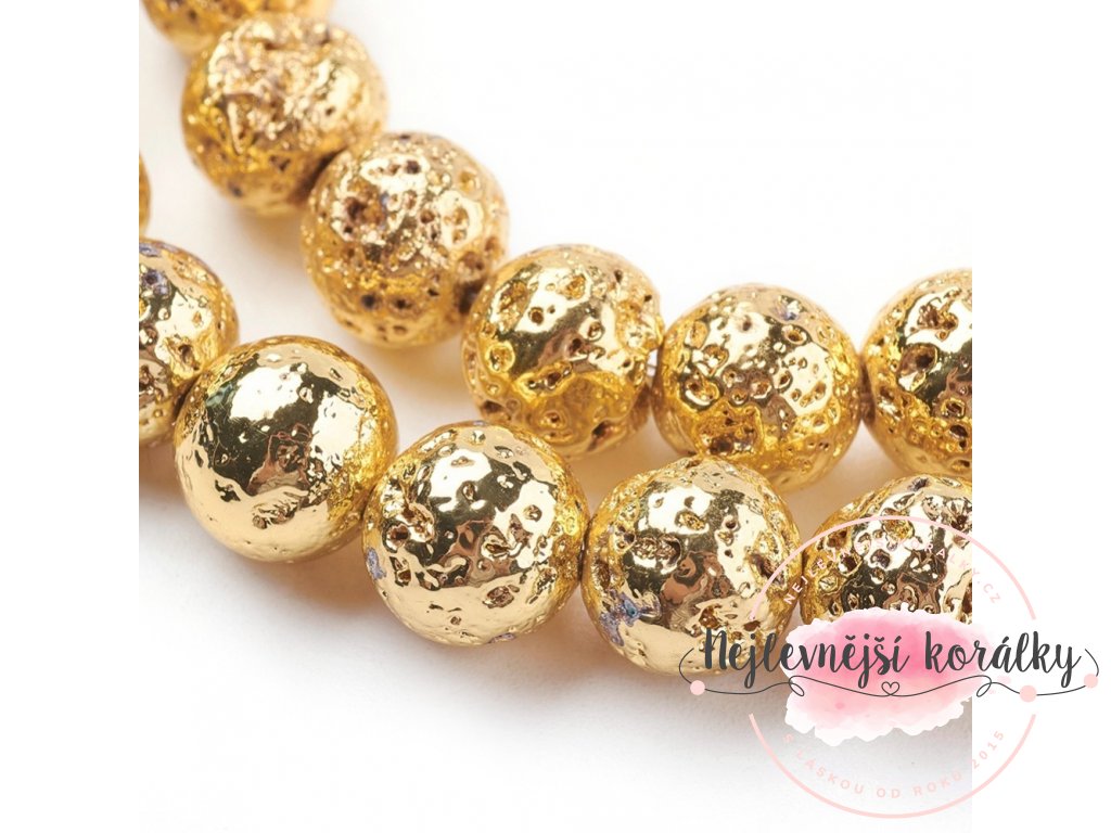 Přírodní pokovená láva - zlatá - ∅ 8 mm - 1 ks